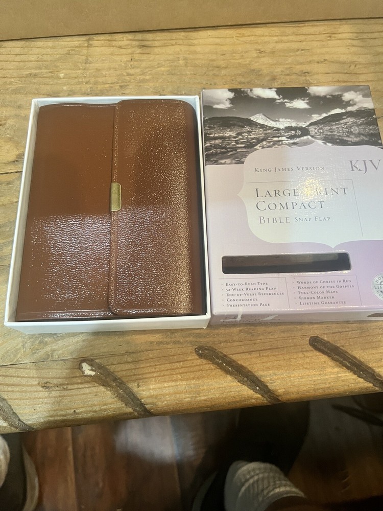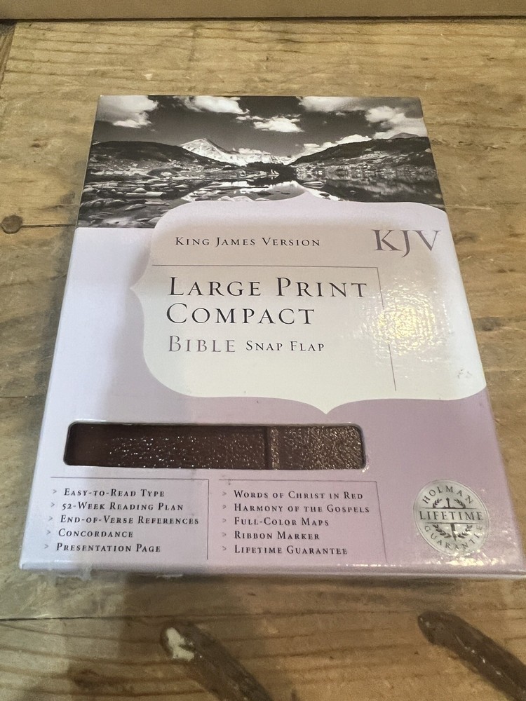 This KJV Large Print Compact Bible is perfect for anyone looking for a portable and durable Bible. The chestnut bonded leather cover with a magnetic flap adds an elegant touch, while the large type makes it easy to read. Published by B&H in 2001, this Bible has 1568 pages and features the King James Version with references and general topics. The author is Holman Bible Holman Bible Staff, and the book's language is English. Measuring at 6.6in. length, 4.9in. width, and 1.5in. height, it weighs 17.3 oz. This Bible is ideal for those who want to carry it with them wherever they go, whether to church, Bible study, or on the go.