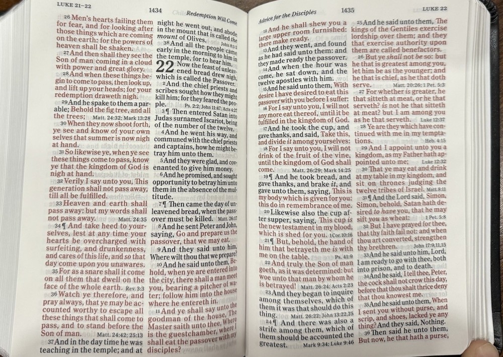 This KJV Bible is perfect for on-the-go reading with its compact yet large 8pt font. The red-letter text makes Christ's words stand out, and the LeatherTouch cover feels premium. Love the ribbon marker and built-in maps, plus the two-column layout is clean and easy to follow. Great quality and free shipping—highly recommend!