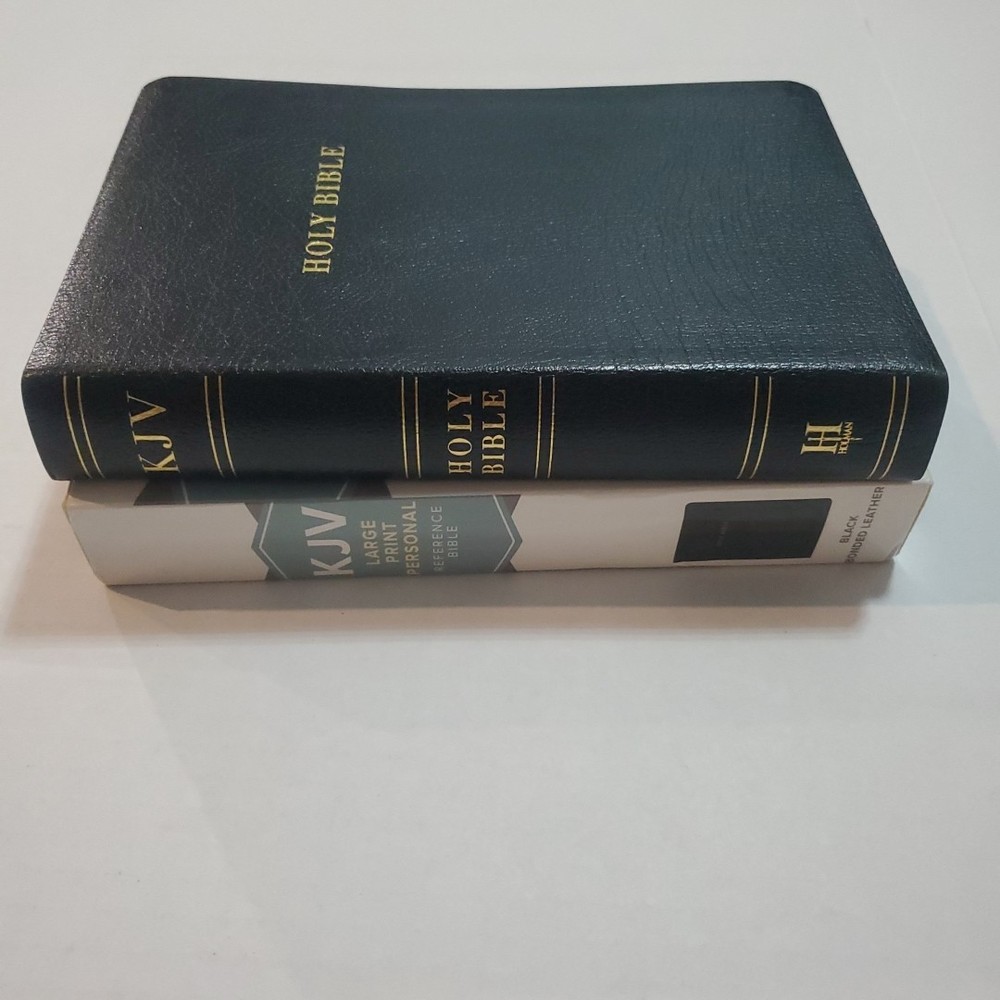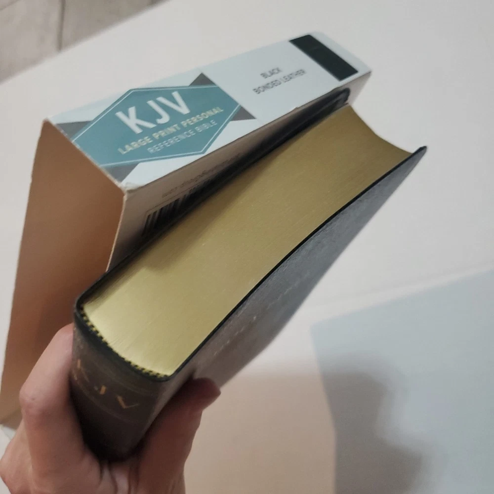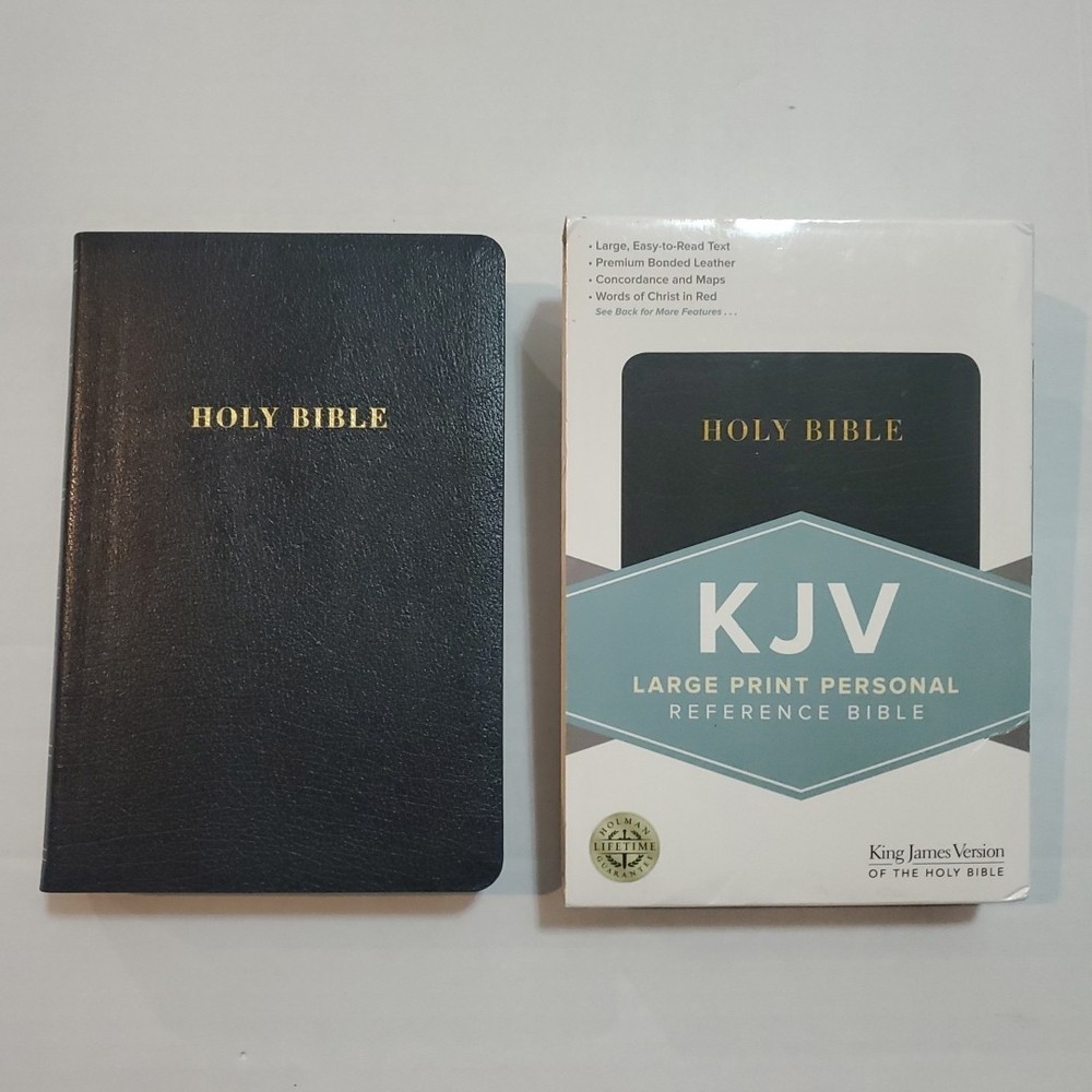 KJV Large Print Personal Reference Bible Black Leather Red Letter. With original box, there are names on the inscription page, otherwise in like new condition.
