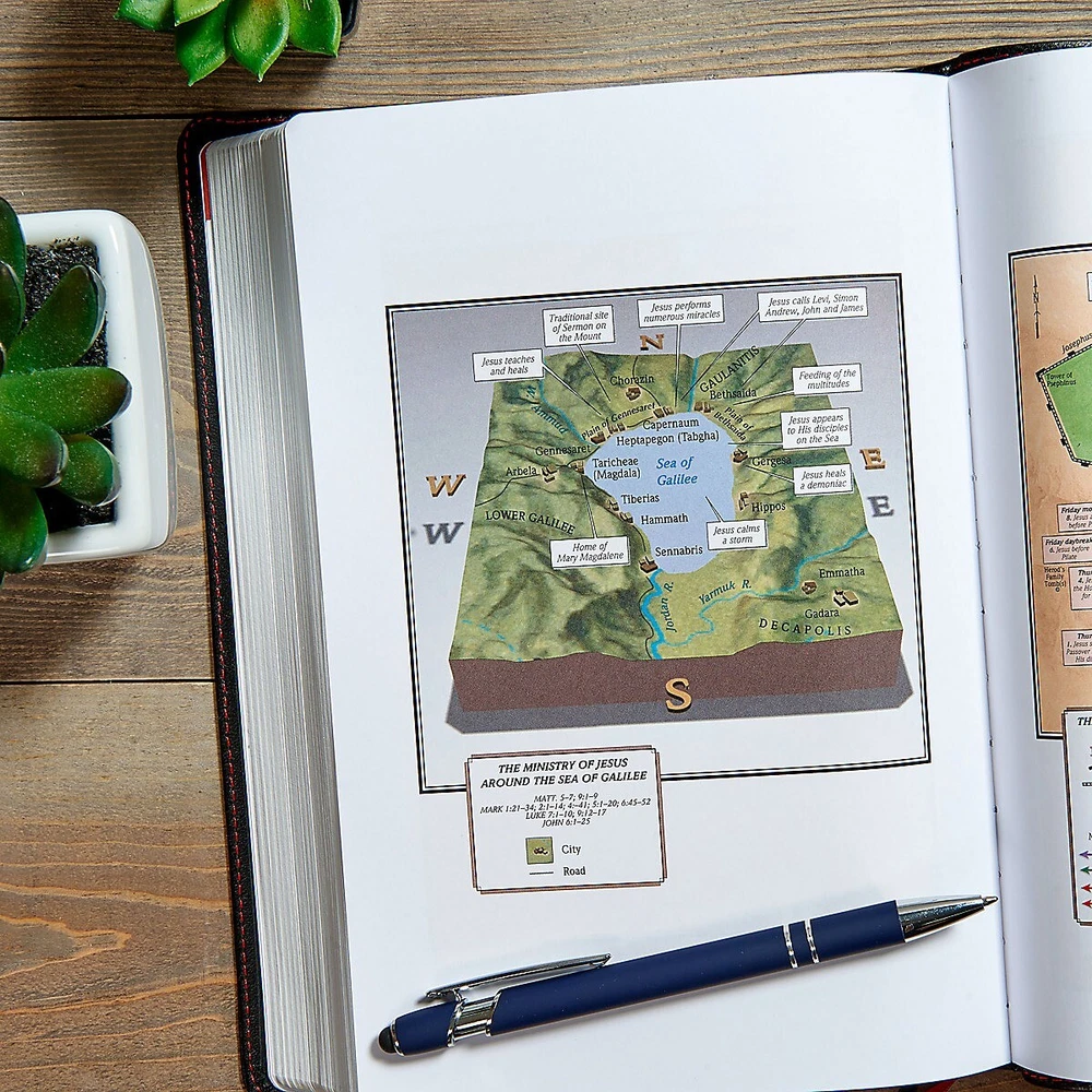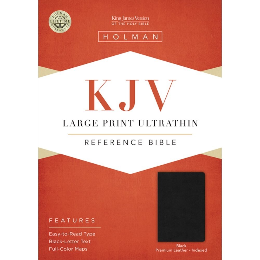 The KJV Large Print Ultrathin Reference Bible is easy-to-carry and easy-to-read, featuring a robust center-column, cross-reference system, 10.5-point type, and an ultrathin design which slips easily into a purse, briefcase, or backpack. Features include: Smyth-sewn binding, Presentation page, Two-column text, Center-column cross references, Topical subheadings, 10.5-point type, Black-letter text, Concordance, Full-color maps, and more. The KJV Large Print Ultrathin Reference Bible features the authorized version of the King James translation (KJV). The KJV is one of the best-selling translations of all time and captures the beauty and majesty of God’s Word for those who love the rich heritage and reverent language of this rendering of the Holy Bible.