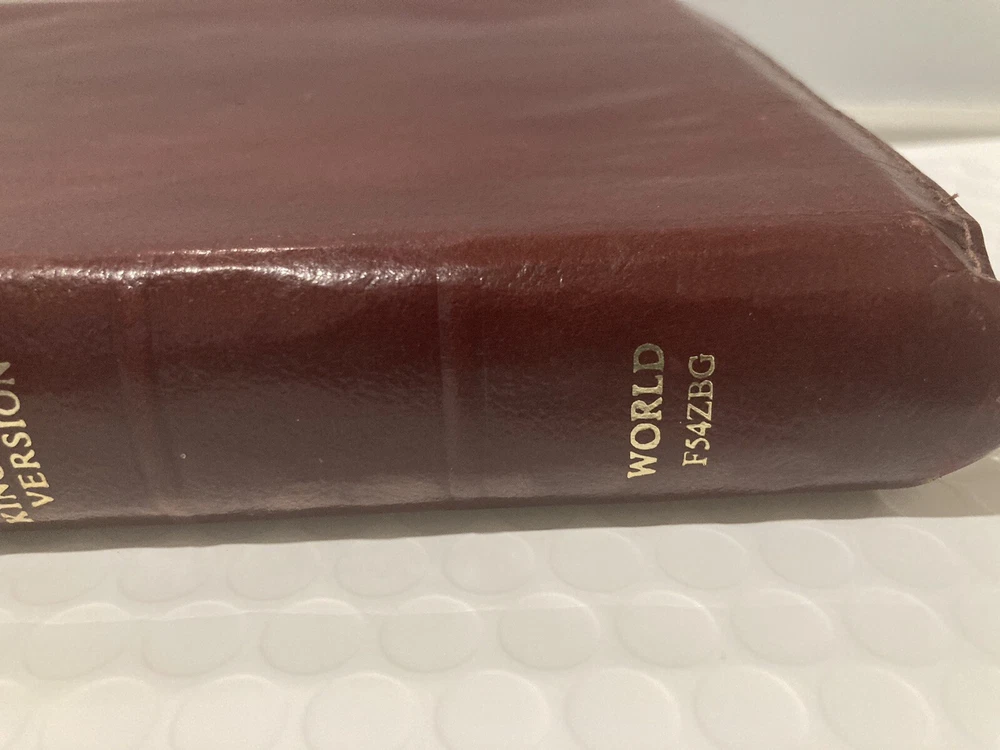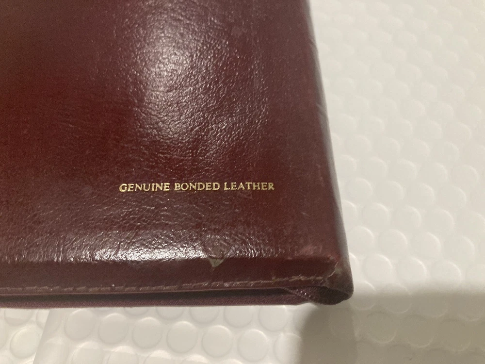 Golden edge, minor dents/tears on leather cover. See pictures for more details. BK6