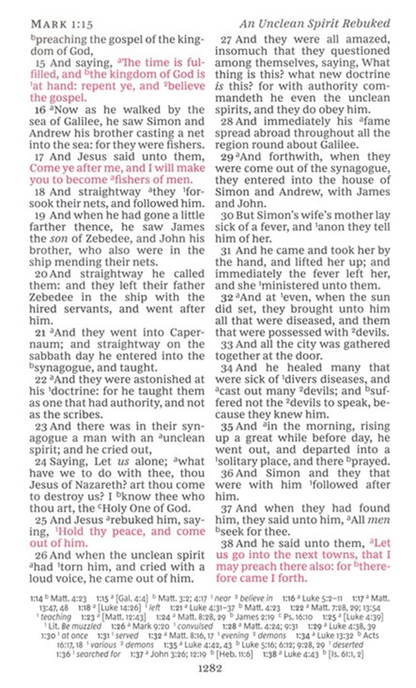 Fast free shipping. Bible was shrink wrapped,in the original box and in a well fitting protective shipping box. It was exactly as described, new, 11 point text size, good paper, and Leathersoft cover. It is slightly lighter and smaller than other Bibles I have with this text size. It also lays flat at any page. The text is black letter which is exactly what I wanted. It is a very good choice for the price. I would definitly buy from this seller again.
