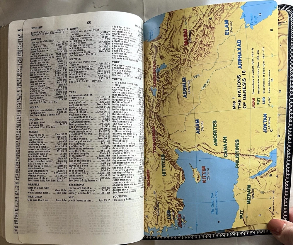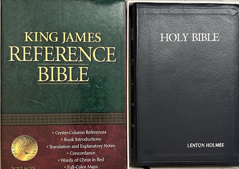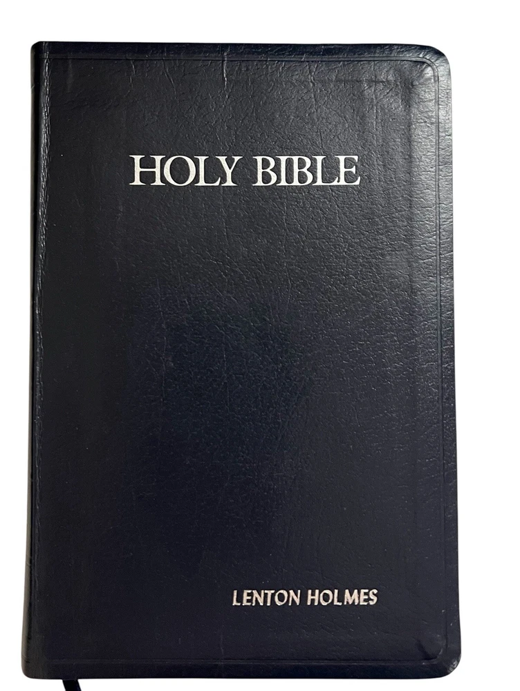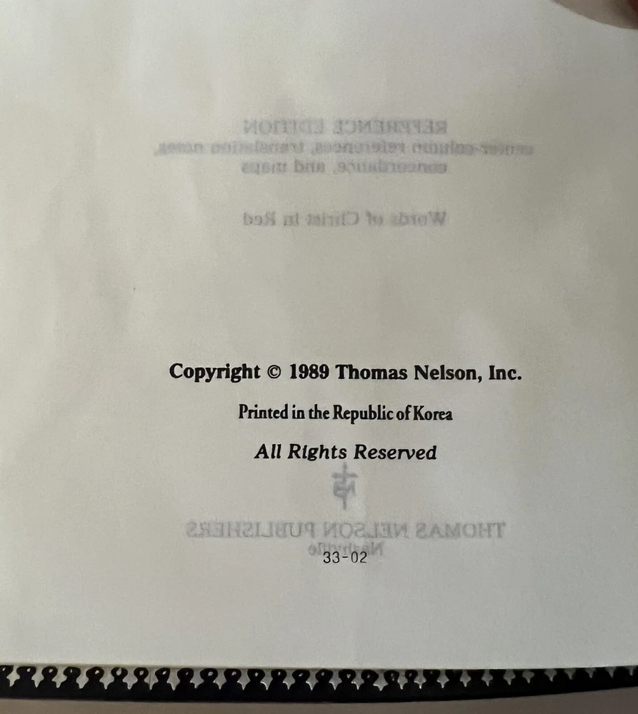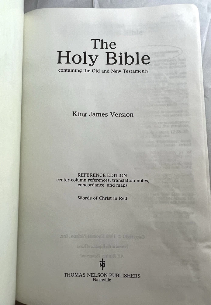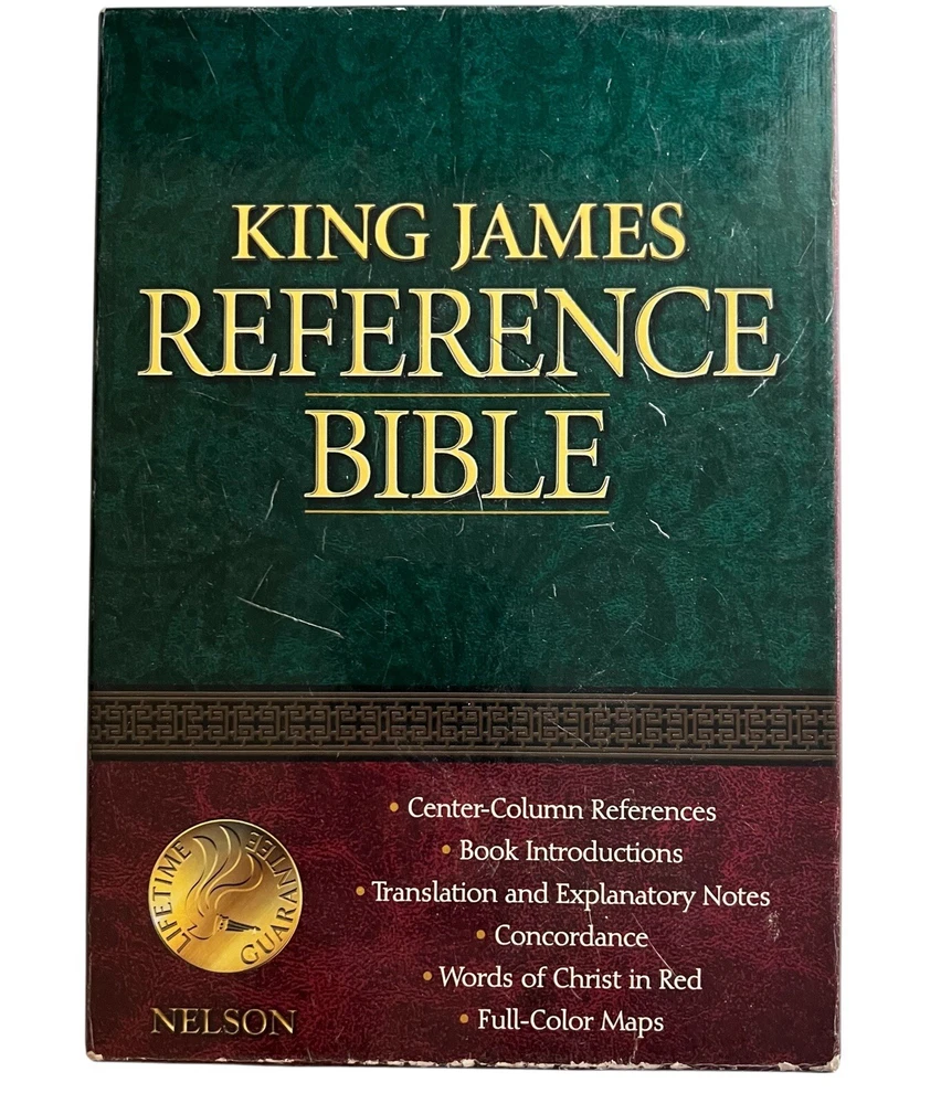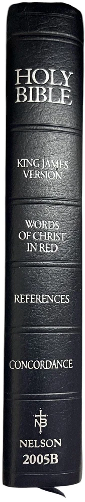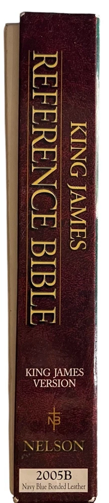 KJV Reference Bible Navy Blue Bonded Leather 2005B Nelson Publishing Concordance Words of Christ in Red Full-Color Maps Gilded Silver Page Edges Like New in Box - personalized - name embossed on front cover Appears to be unused. No Writing or highlighting.