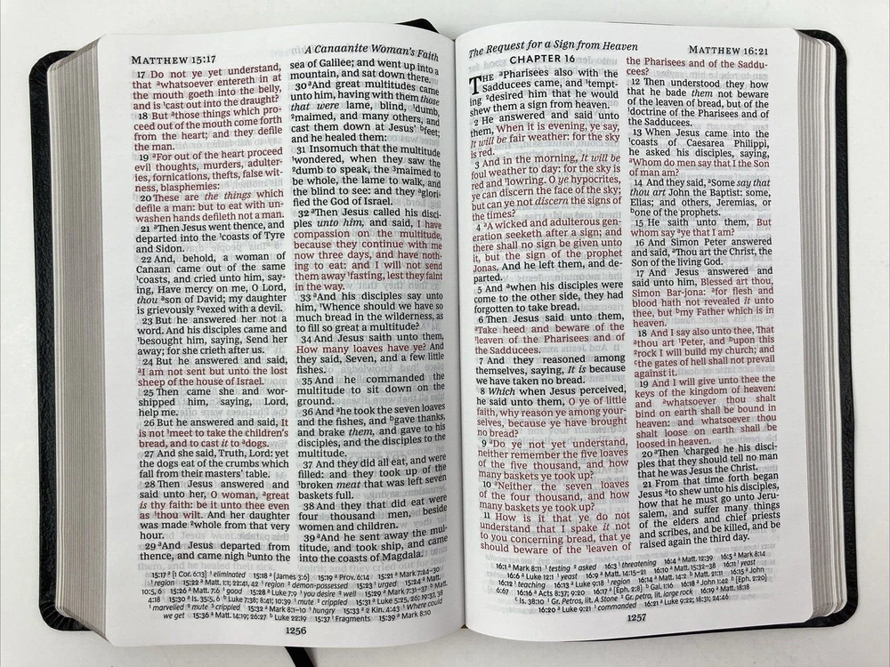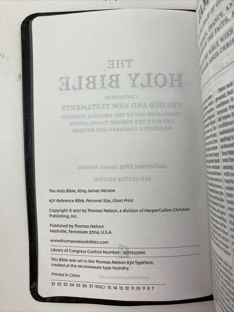 KJV Reference Bible, Personal Size, Giant Print Red Letter Edition, Bonded Leather GOOD CONDITION -- CLEAN COPY/NO MARKINGS ON THE INSIDE (see pics) *Item will be protected well for shipping and comes with a tracking number for confirmation.* I ship out items every day so expect a quick delivery!
