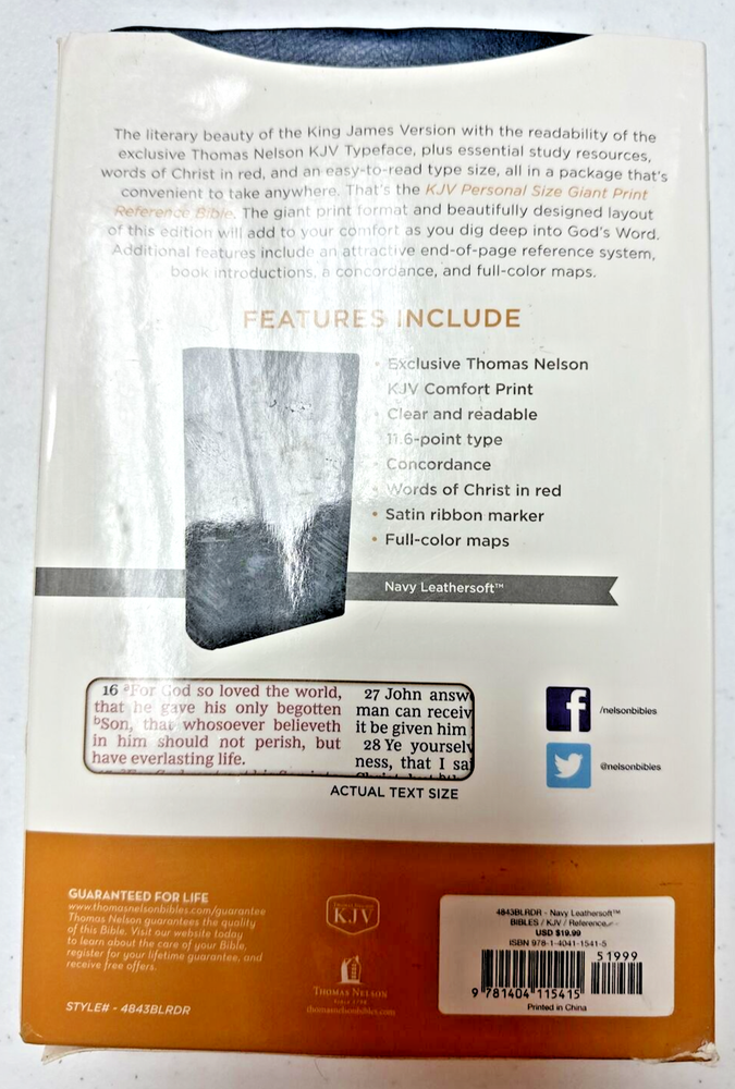 Absolutely love this Bible! The giant print is so easy on my eyes, and the navy leathersoft cover feels amazing in my hands. It's a beautiful, high-quality edition that makes daily reading a true pleasure.