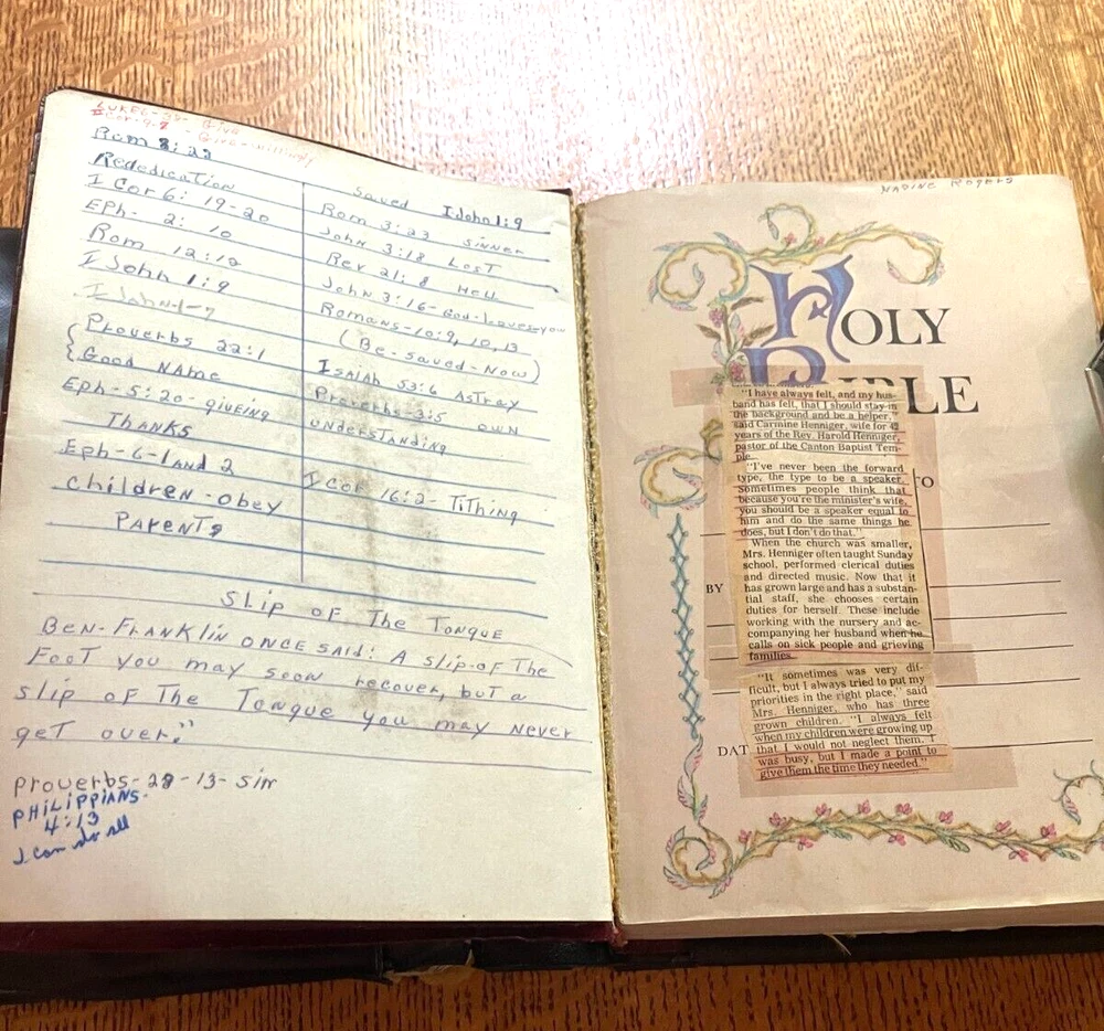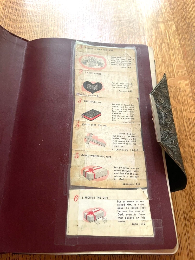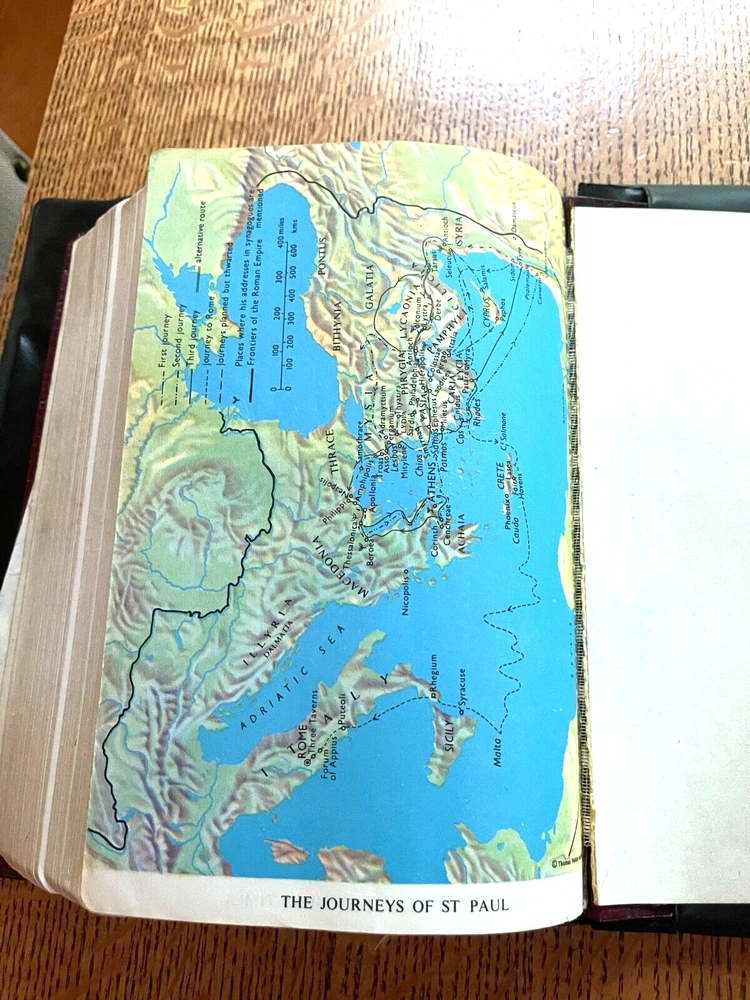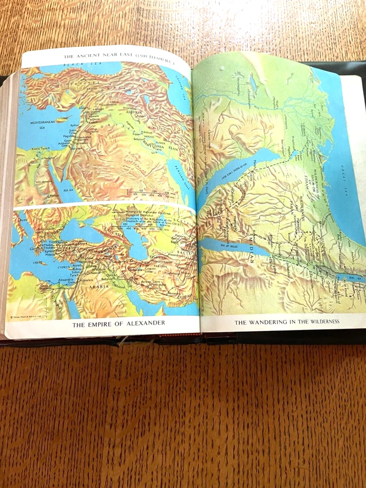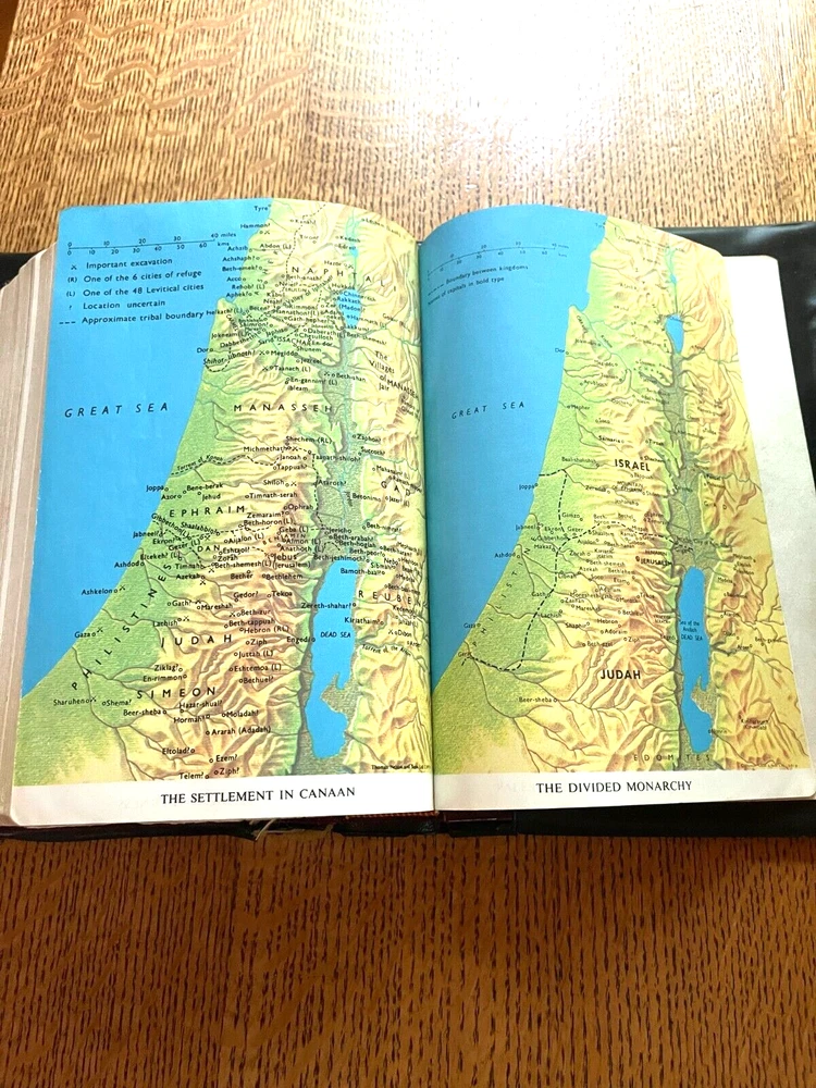 ESTATE ITEM: The estate was a minister and his wife. I believe this bible to have been hers. The leather jacket she had her bible in has a tear but does not deflect from the security of keeping the bible from damage. She did personalize this bible with some writings and other things. Selling as is. Please see pictures. Get ready to own a piece of history with this vintage Holy Bible in KJV translation. This genuine bonded leather book features Giant print, a dust jacket, and beautiful illustrations (Pictures), making it a great addition to any collection or a perfect gift for a religious friend or family member. The Reference Edition includes a concordance for easy reference and personalization options are available. This book is a must-have for anyone interested in religion, Christianity, or the Bible. Don't miss out on the chance to own this rare gem of a book. Words of Christ in Red. Maps in back of bible. About Me: I work full time plus. I do eBay as a hobby as I love to go to estate sales and sell items from my own collections. I use and buy only new and clean packing material (bubble wrap, paper, tape, peanuts, etc.) I do not use dirty or used packing material. All my items are clean and well packaged. I take a lot of time to take pictures, describe item to the best of my ability, buy and pick up items and wrap them safely and cleanly. I only ship USPS priority mail and I ship next day. Thank you for considering buying my items.