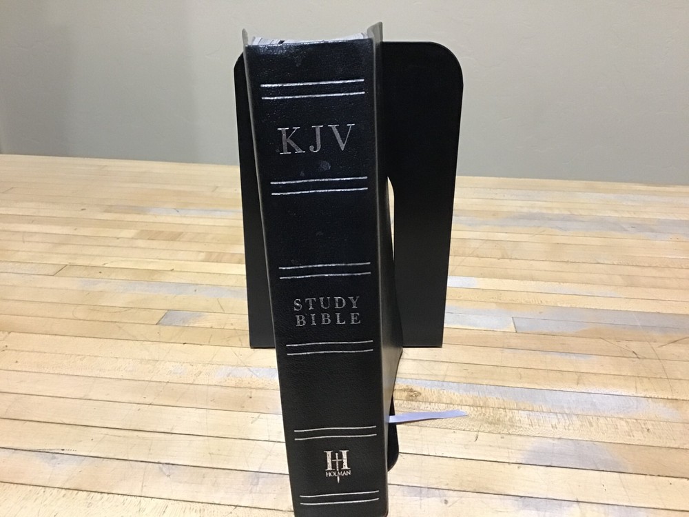 Product Category : Books ISBN : 1433600382 Title : KJV Study Bible, Black Genuine Leather EAN : 9781433600388 Binding : leather_bound Publisher : Holman Bible Publishers Publication Date : 9/1/2012 12:00:01 AM Pages : 2304 Signed : False First Edition : False Dust Jacket : False List Price (MSRP) : 79.99 Height : 2.2000 inches Width : 7.7000 inches Length : 10.1000 inches Weight : 4.2500 pounds Condition : Acceptable Inscription on the inside of the cover; The box is not included;