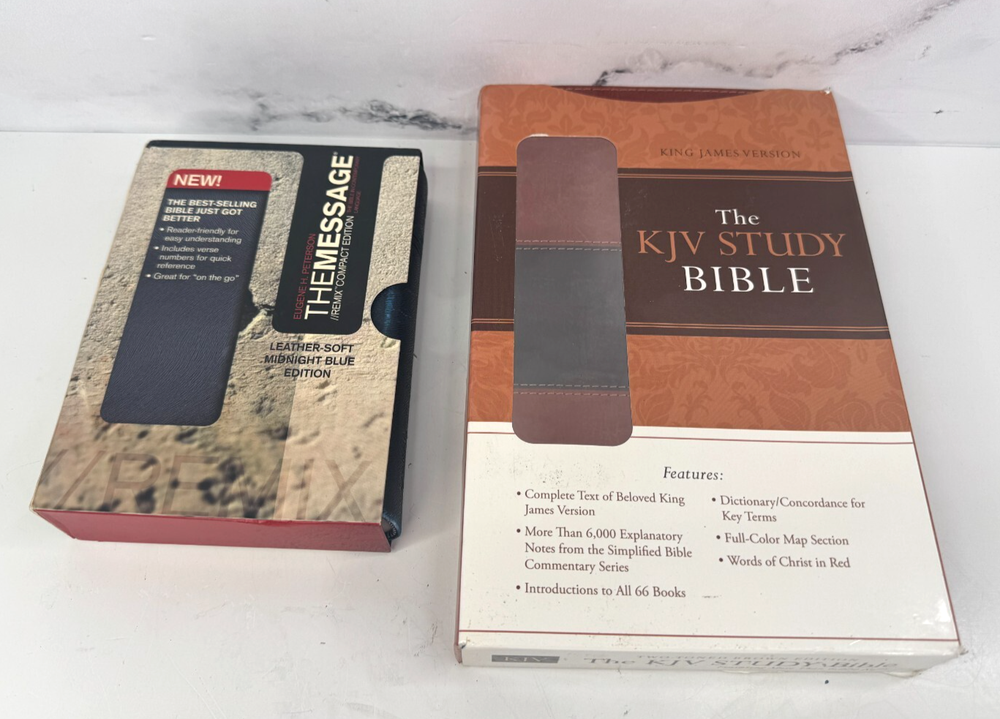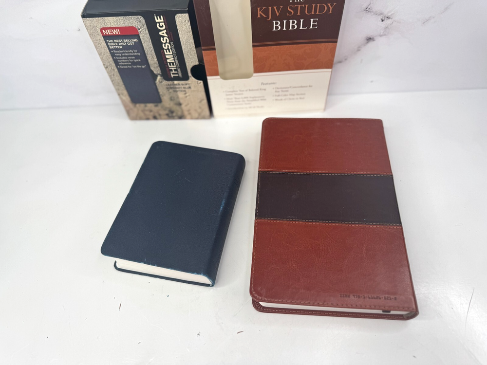 This KJV Study Bible is in fantastic condition! Pages are clean and tight with no writing. Only minor wear on the cover and page edges, exactly as shown. A beautiful, solid copy at a great value.