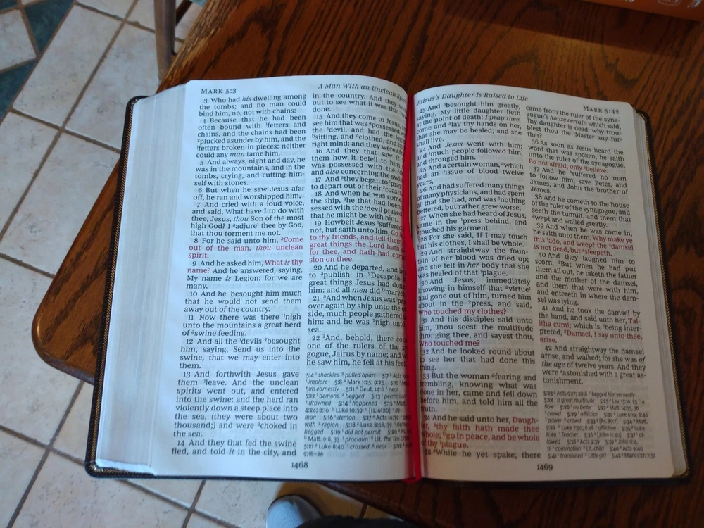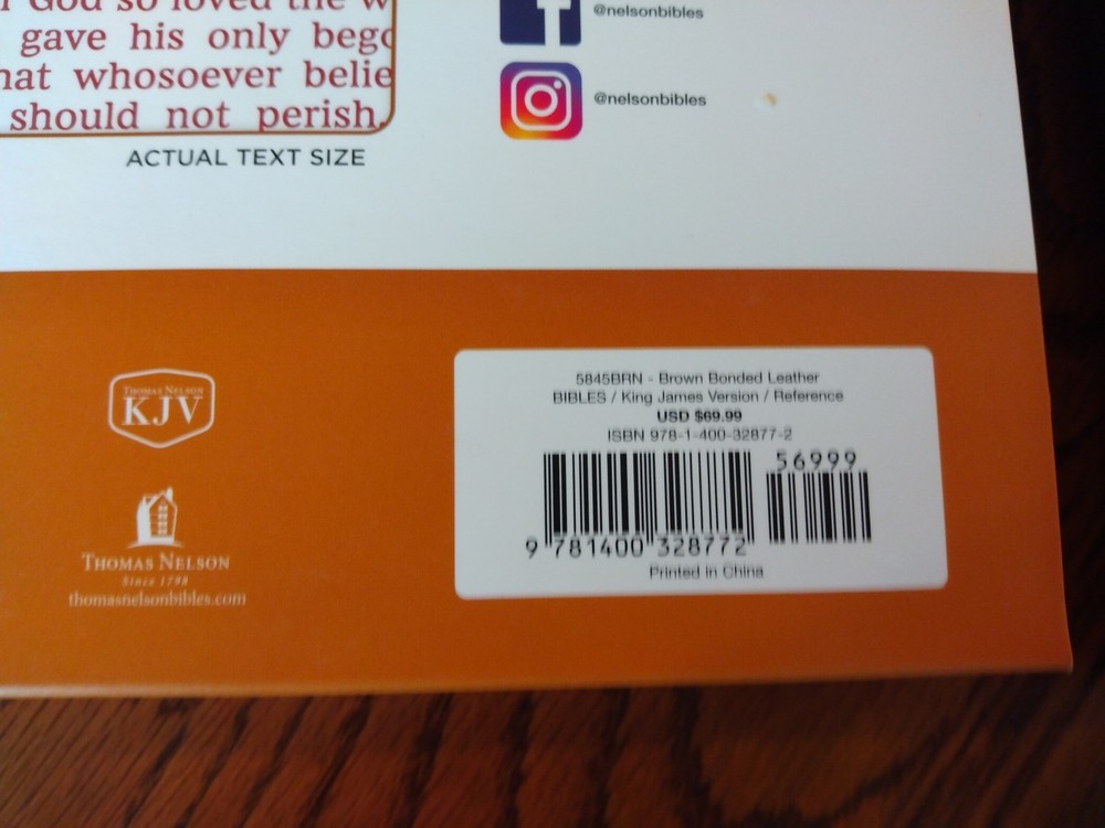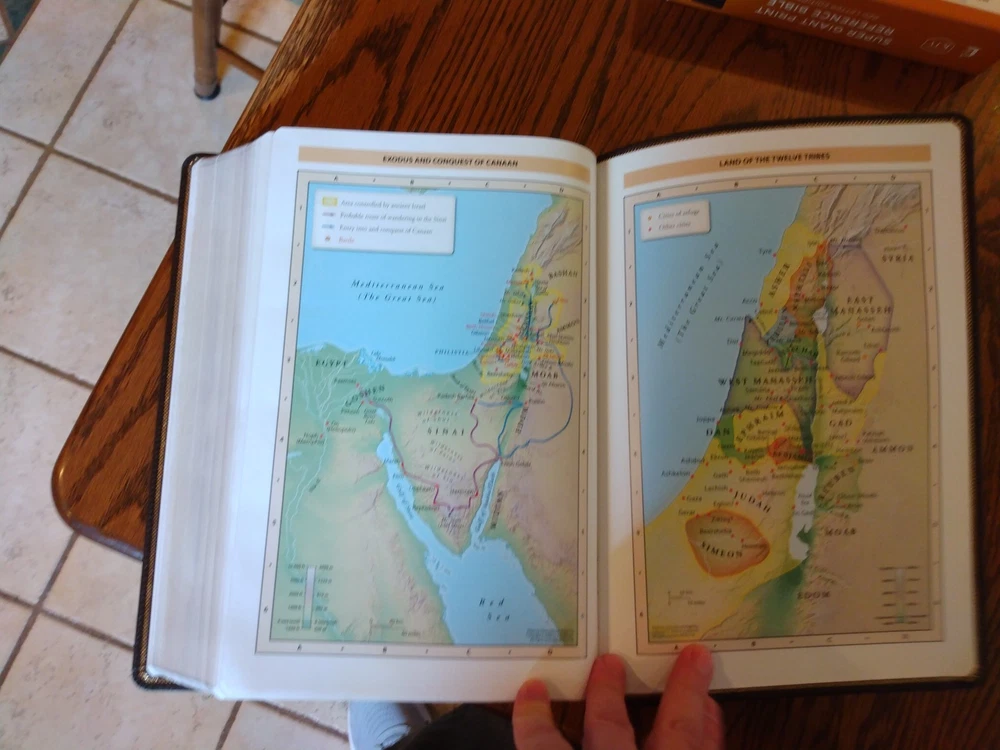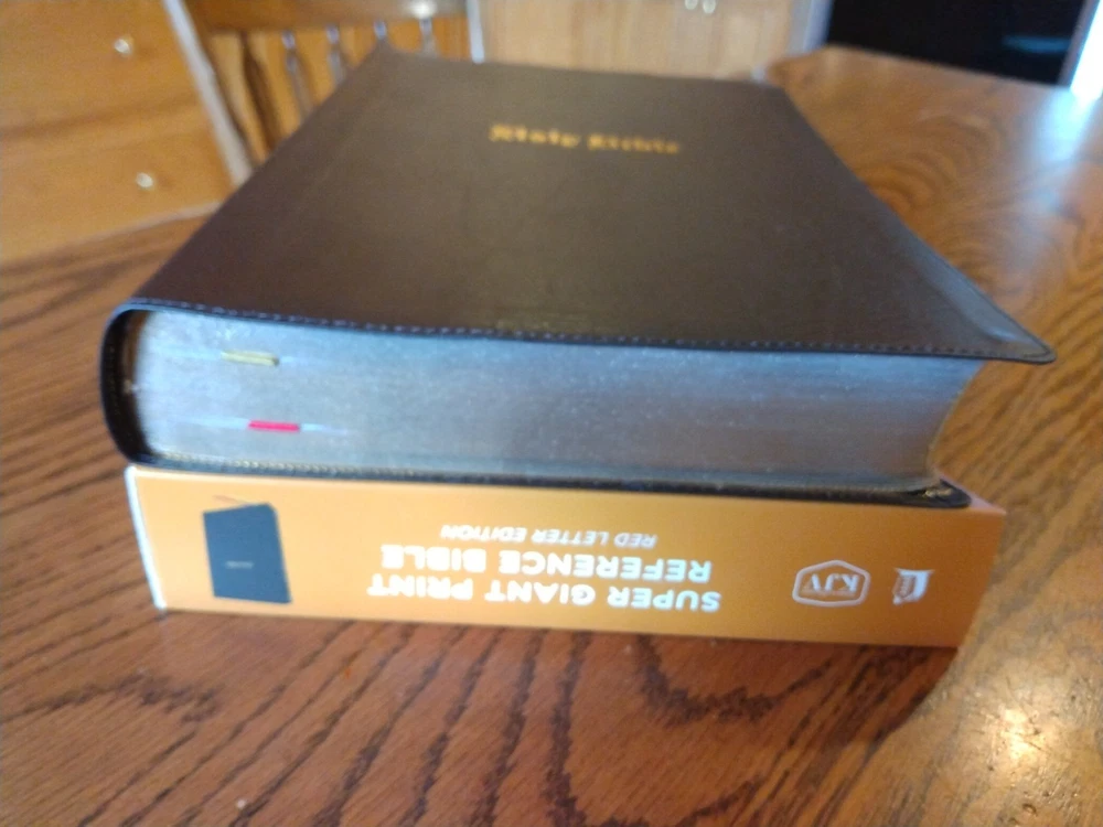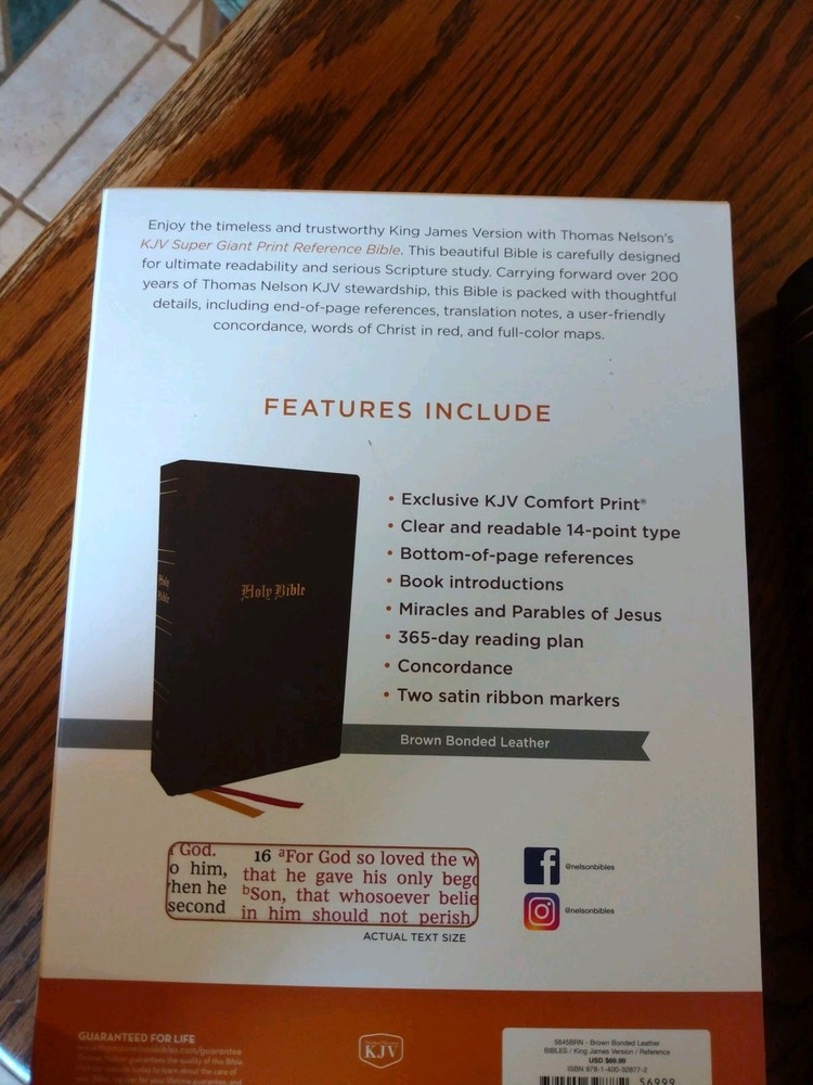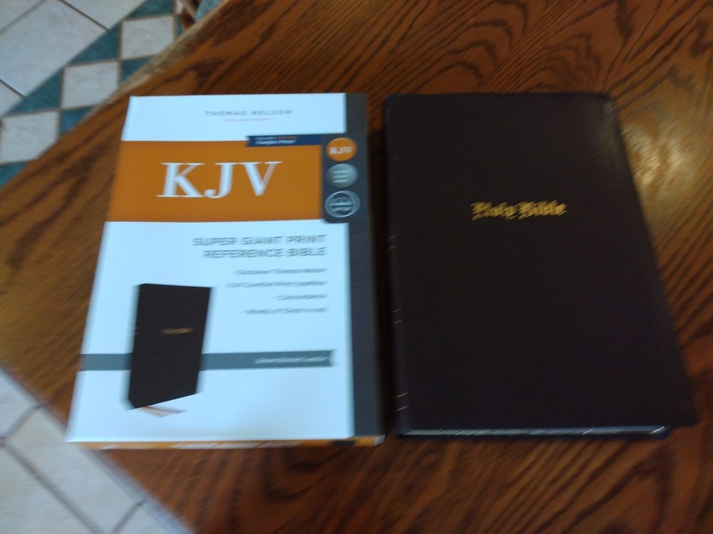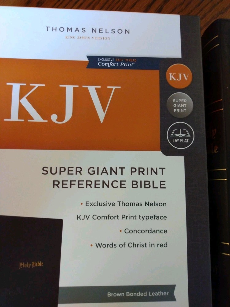 KJV Super Giant Print Reference Bible - Brown Bonded Leather~ Retail $69.99 Font/Text size is point Dimensions: 10.25 x 7 x 1.5" thick Red letter for Christ's words Feel free to ask questions. I try to return and answer your questions in a timely manner and as soon as I am able. NO RETURNS. Please buy responsibly. Visit my eBay store at aboundingjoy66 Product Description The literary beauty of the King James Version with the readability of Thomas Nelson's custom size 14 KJV font, plus essential study resources, words of Christ in red - that's the KJV Super Giant Print Reference Bible . The giant print format and beautifully designed layout of this edition will add to your comfort as you dig deep into God's Word. Additional features include an attractive end-of-page reference system, book introductions, a concordance, and full-color maps. Features: Presentation page Bible book introductions with a concise overview of each book 43,000+ cross-references trace the connections in Scripture One-year reading plan Miracles and parables of Jesus chart Concordance Full-color maps Satin ribbon markers Clear and readable 14-point KJV Comfort Print Product Information Title: KJV Super Giant-Print Reference Bible, Comfort Print--bonded leather, brown Format: Imitation Leather Number of Pages: 1952 Vendor: Thomas Nelson Publication Date: 2023 Dimensions: 10.25 X 7.00 (inches) Weight: 3 pounds 7 ounces ISBN: 1400328772 ISBN-13: 9781400328772 References: Cross References Text Color: Red Letter Text Size: 14 Point Note Size: 10 Point Thumb Index: No Ribbon Marker: Yes Spine: Glued Page Gilding: Gold Stock No: WW328772 Imprintable: Yes