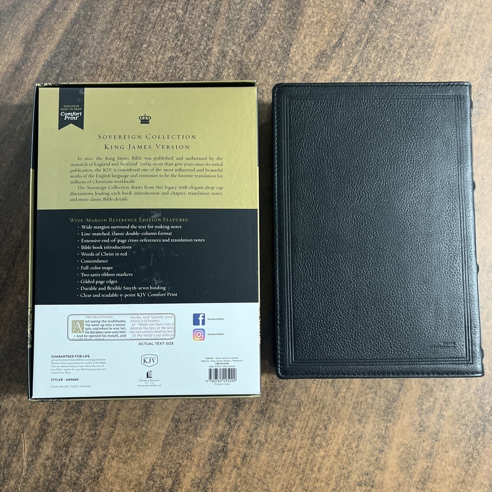 | Book Title | KJV, Wide-Margin Reference Bible, Sovereign Collection, Genuine Leather, Black, Red Letter, Comfort Print : Holy Bible, King James Version |