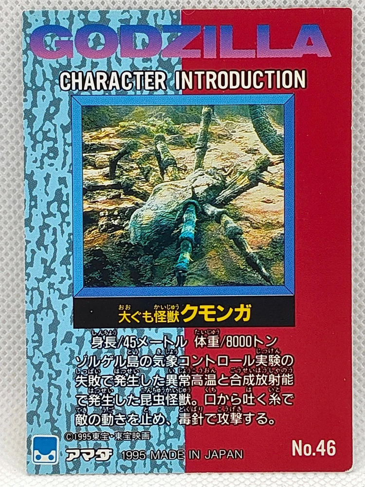 KUMONGA GODZILLA CHARACTER INTRODUCTION Amada Trading Cards 1995 MADE IN JAPAN