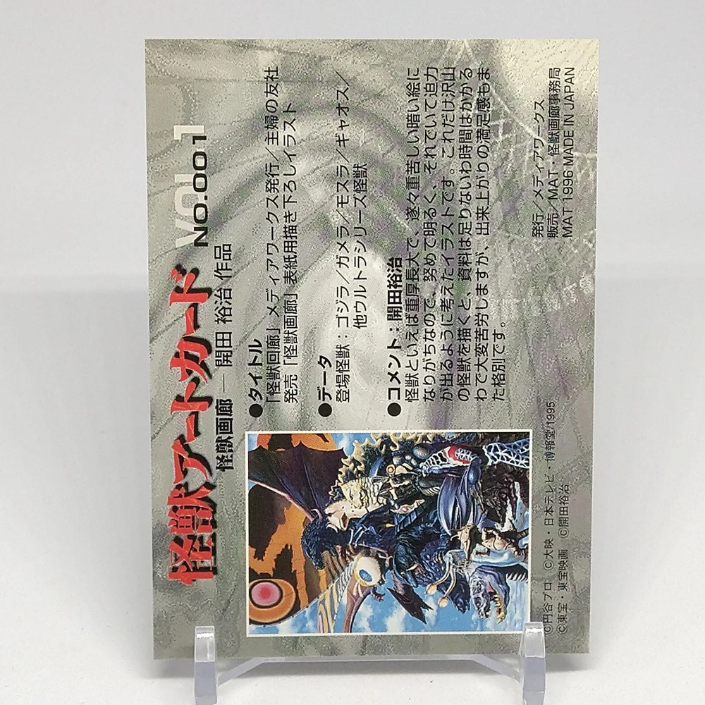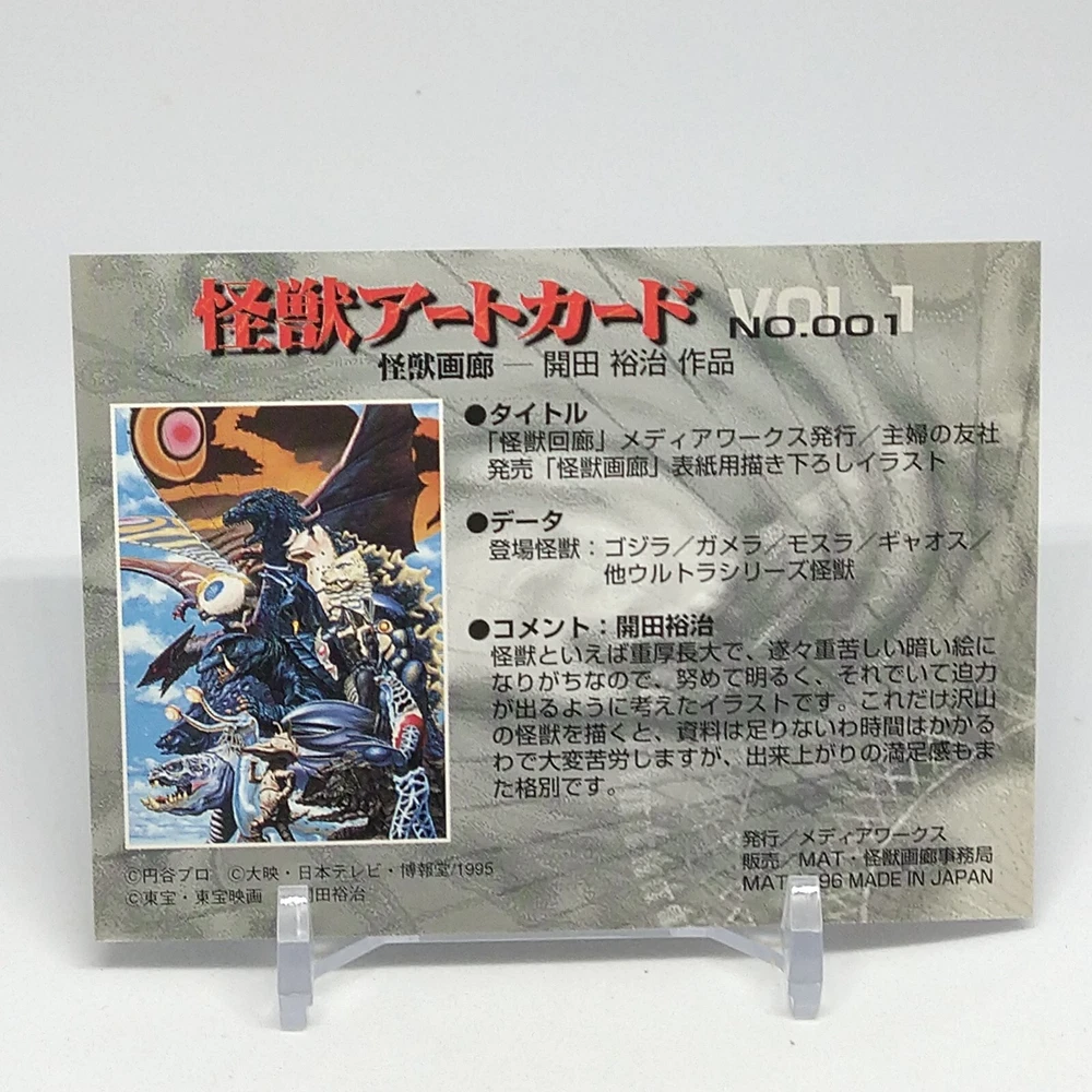 Kaiju Gallery Godzilla Kaiju Art Card Vol.1 No.1 Yuji Kaida 1996 Tokusatsu Description Please see the picture for the details of damages and dirt or ask us before your purchase. 100% Authentic or Money Back Guaranteed. (Do not worry you are protected by eBay and eBay Managed Payments) See the pictures for more details. If you have any question about the condition, accessories, or anything about the product, please feel free to message us. We are glad to answer all your concerns. Payment Same as ebay payment method. Shipping Economy shipping: Delivery time will be about 11 - 23 days. Standard shipping: Delivery time will be about 5 - 10 days. Expedited shipping: Delivery time will be about 1 - 4 days. Terms of Sale Money back guarantee within 30 days if returned by customer. We would not be able to accept your bid if you; 1) Don't have a PayPal account. 2) Have unpaid items reported. 3) Have a primary shipping address in countries you don't ship to. 4) Have reportedly violated eBay policies. 5) Have a Feedback score lower than the number you specify. International Buyers - Please Note: Import duties, taxes and charges are not included in the item price or shipping charges. These charges are the buyer's responsibility. Please check with your country's customs office to determine what these additional costs will be prior to bidding/buying. These charges are normally collected by the delivering freight (shipping) company or when you pick the item up - do not confuse them for additional shipping charges.