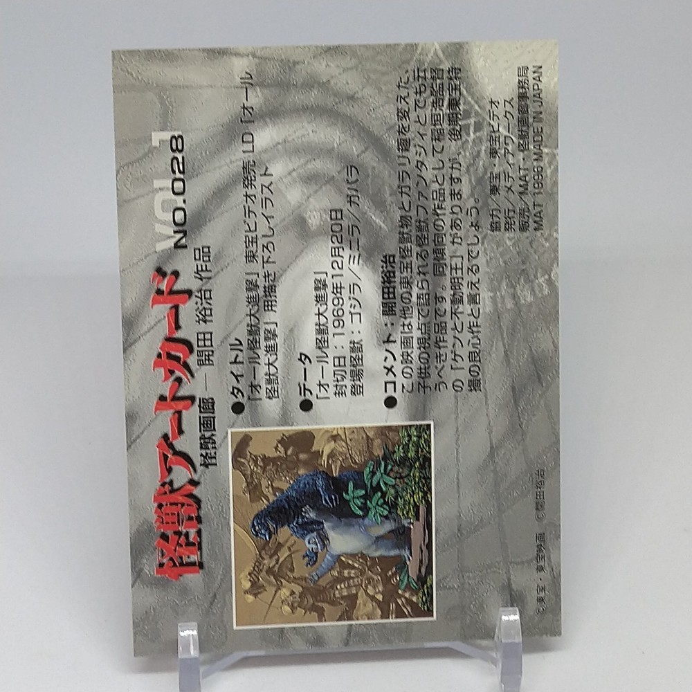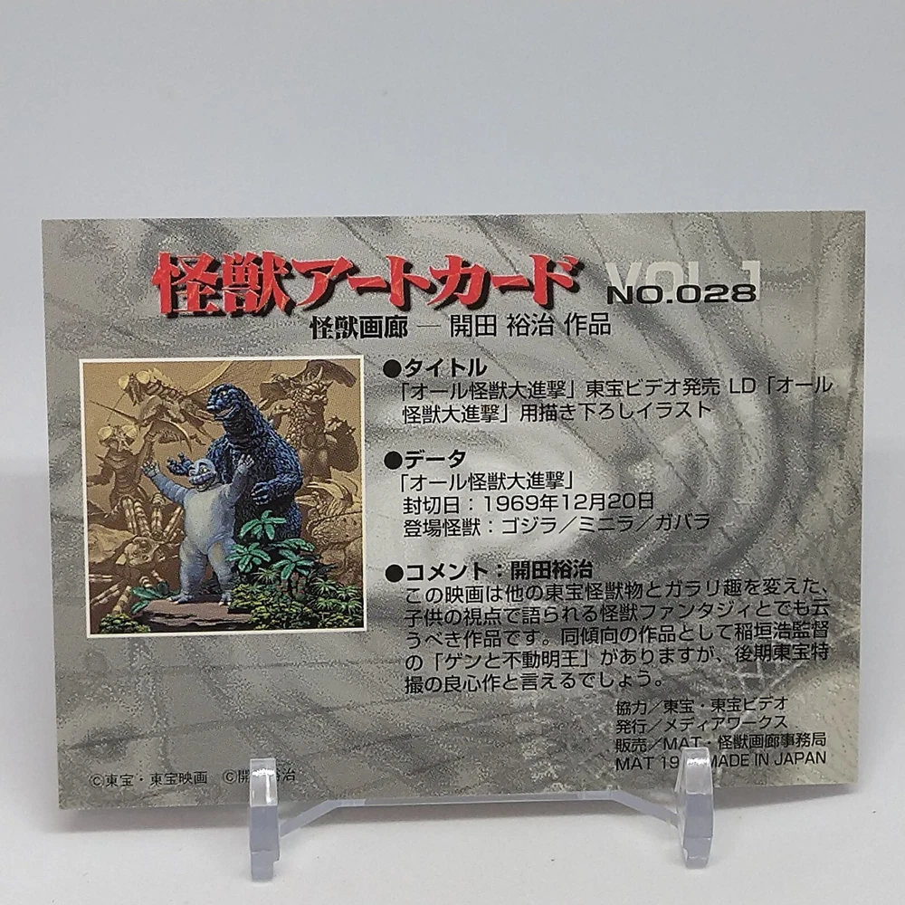 Kaiju Gallery Godzilla Minya Kaiju Art Card No.28 Yuji Kaida 1996 Tokusatsu Description Please see the picture for the details of damages and dirt or ask us before your purchase. 100% Authentic or Money Back Guaranteed. (Do not worry you are protected by eBay and eBay Managed Payments) See the pictures for more details. If you have any question about the condition, accessories, or anything about the product, please feel free to message us. We are glad to answer all your concerns. Payment Same as ebay payment method. Shipping Economy shipping: Delivery time will be about 11 - 23 days. Standard shipping: Delivery time will be about 5 - 10 days. Expedited shipping: Delivery time will be about 1 - 4 days. Terms of Sale Money back guarantee within 30 days if returned by customer. We would not be able to accept your bid if you; 1) Don't have a PayPal account. 2) Have unpaid items reported. 3) Have a primary shipping address in countries you don't ship to. 4) Have reportedly violated eBay policies. 5) Have a Feedback score lower than the number you specify. International Buyers - Please Note: Import duties, taxes and charges are not included in the item price or shipping charges. These charges are the buyer's responsibility. Please check with your country's customs office to determine what these additional costs will be prior to bidding/buying. These charges are normally collected by the delivering freight (shipping) company or when you pick the item up - do not confuse them for additional shipping charges.