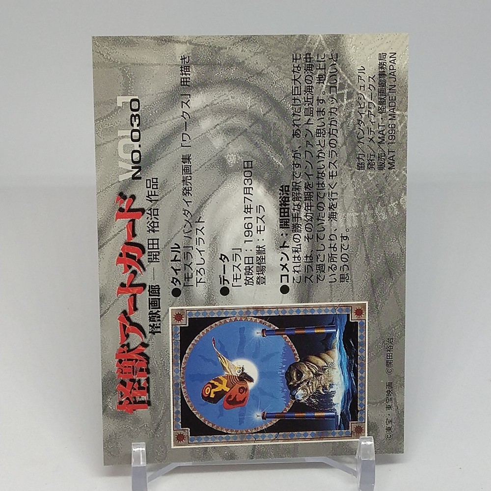 Kaiju Gallery Mothra Kaiju Art Card Vol.1 No.30 Yuji Kaida 1996 Tokusatsu Description Please see the picture for the details of damages and dirt or ask us before your purchase. 100% Authentic or Money Back Guaranteed. (Do not worry you are protected by eBay and eBay Managed Payments) See the pictures for more details. If you have any question about the condition, accessories, or anything about the product, please feel free to message us. We are glad to answer all your concerns. Payment Same as ebay payment method. Shipping Economy shipping: Delivery time will be about 11 - 23 days. Standard shipping: Delivery time will be about 5 - 10 days. Expedited shipping: Delivery time will be about 1 - 4 days. Terms of Sale Money back guarantee within 30 days if returned by customer. We would not be able to accept your bid if you; 1) Don't have a PayPal account. 2) Have unpaid items reported. 3) Have a primary shipping address in countries you don't ship to. 4) Have reportedly violated eBay policies. 5) Have a Feedback score lower than the number you specify. International Buyers - Please Note: Import duties, taxes and charges are not included in the item price or shipping charges. These charges are the buyer's responsibility. Please check with your country's customs office to determine what these additional costs will be prior to bidding/buying. These charges are normally collected by the delivering freight (shipping) company or when you pick the item up - do not confuse them for additional shipping charges.