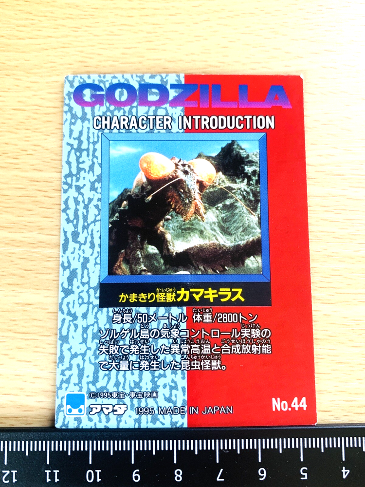Godzilla 1995 Kamacuras Card No.44 TOHO Japan E-64 Monster Collectible