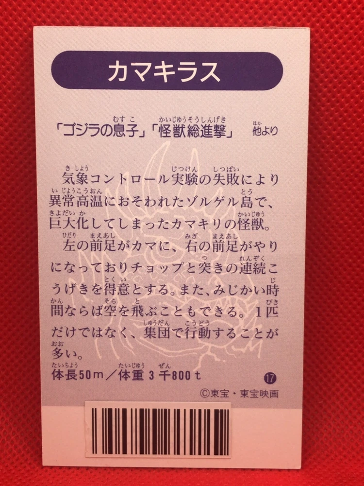 Vintage Kamacuras Godzilla Barcode Battler TOHO No.17 rare 4-inch card