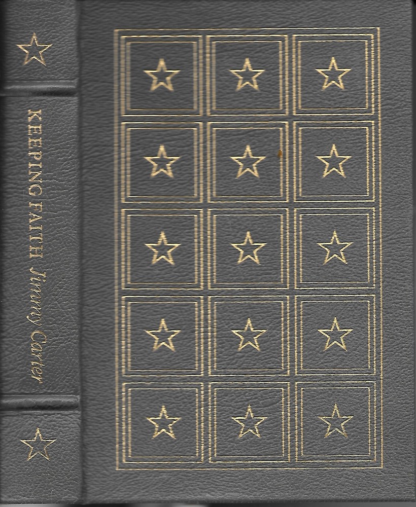 Author: Carter, Jimmy Title: Keeping Faith Cover: Leather Bound The Easton Press, Norwalk, CT Date: 1982 Size: Small 4to 9" - 11" tall Pages: 622 Book: Very Good DJ: No Dust Jacket Topic: Biography Notes: Autographed Copy BY Jimmy Carter. Bound in Genuine Leather, Gilted Fore Edge, No Dust Jacket, Book Tight, Text is clean no markings seen, With Black & White Illustrations and Photographs Rec #: 18990 47C