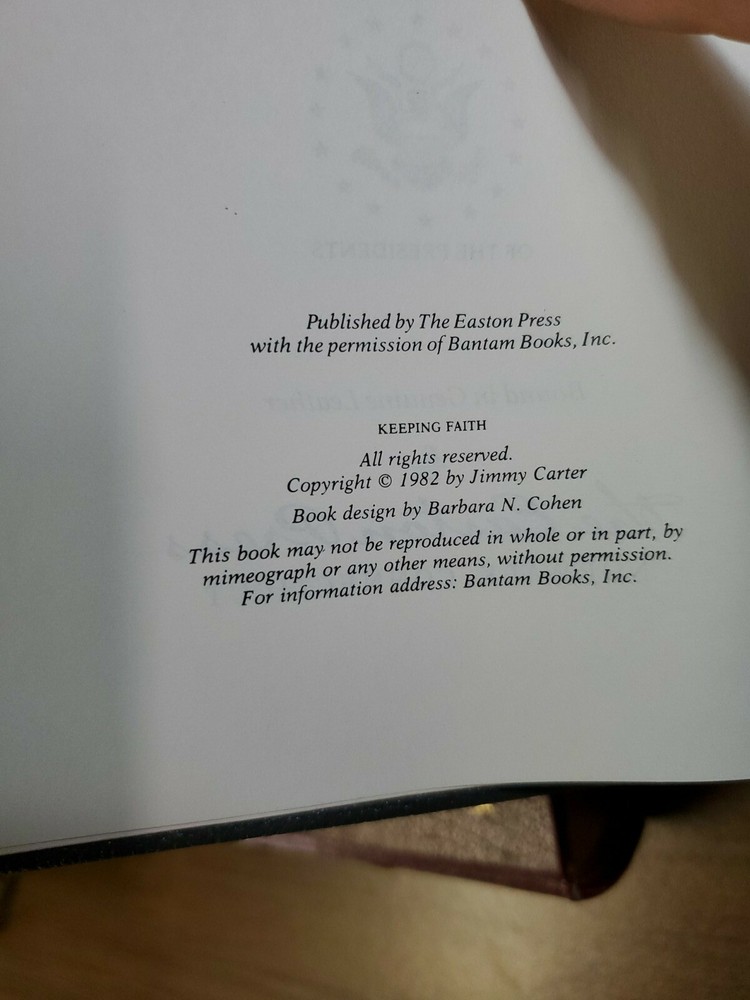 Keeping Faith by Jimmy Carter SIGNED Easton Press. Excellent condition Shipped with USPS Priority Mail.