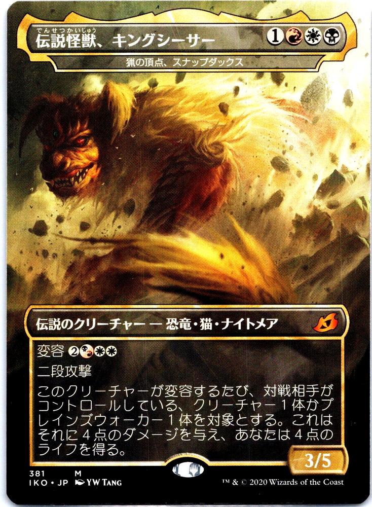 King Caesar, Awoken Titan - Ikoria Godzilla MTG (LP) Japanese Card Lightly Played (LP) Lightly Played condition cards can have slight border or corner wear, or possibly minor scratches. No major defects are present, and there are less than 4 total flaws on the card. Lightly Played condition foils may have slight fading or indications of wear on the card face.