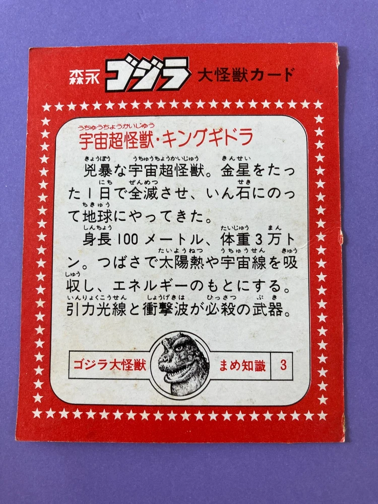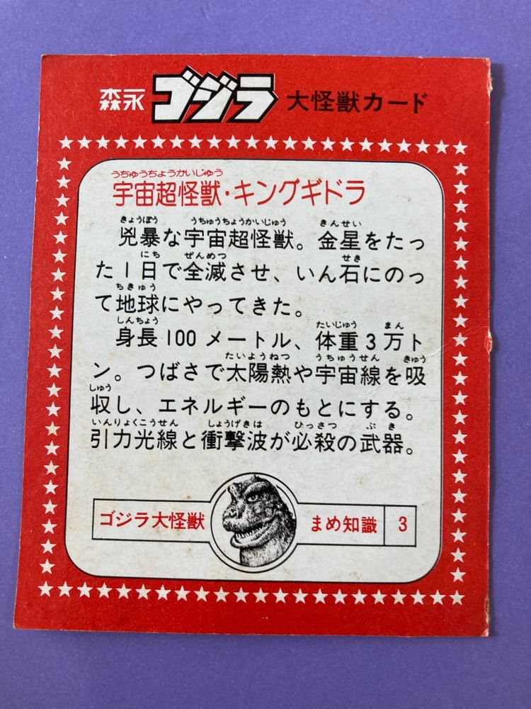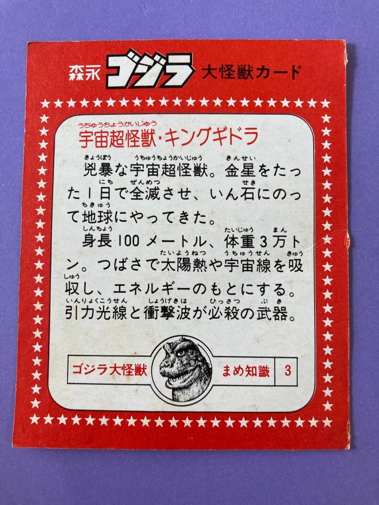 King Ghidorah 3, Large monster Card TOHO Retro Japanese Vintage Morinaga