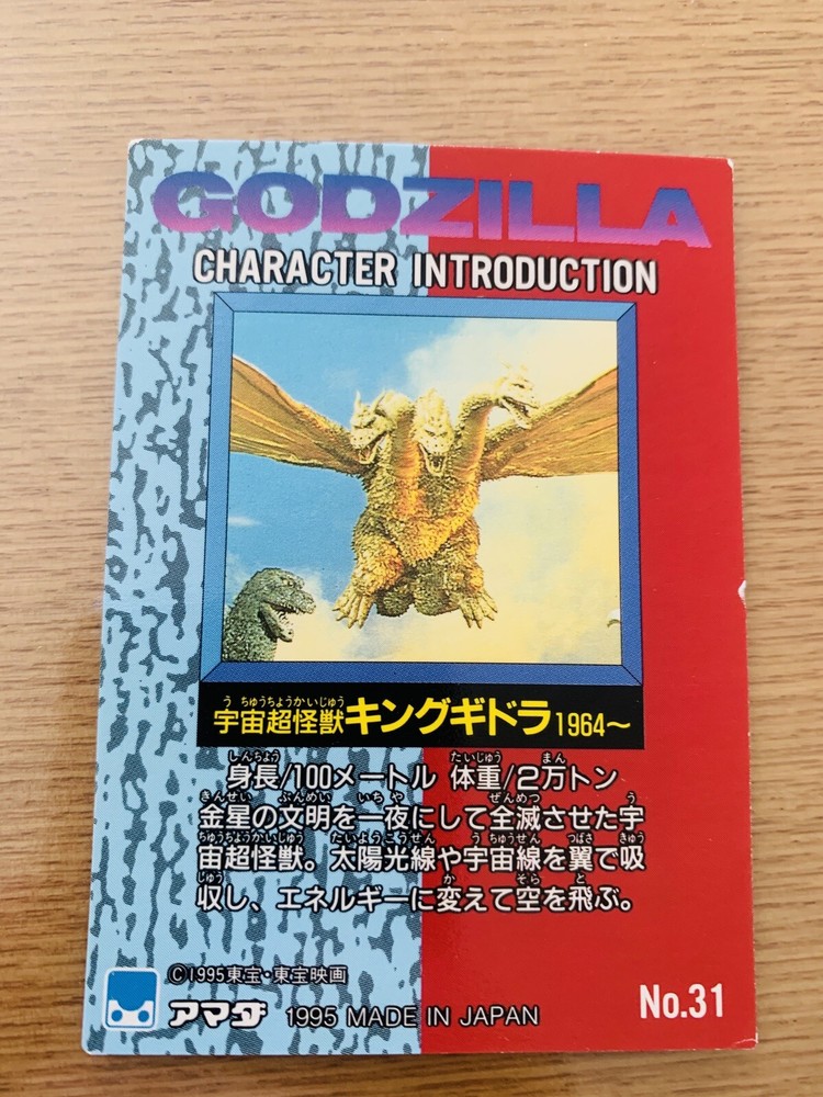 King Ghidorah Godzilla 1995 CARD No.31 TOHO From Japan D-5