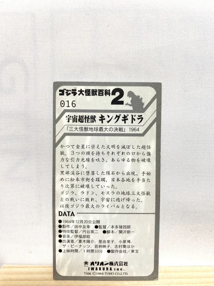 You can get a discount if you buy the products in bulk Please select multiple items you would like to purchase and send us a message. I would be happy if I could make a good deal with you. Send us the URL of the product you want. If you don't know, send us the product number. "a-ri-ga-to-u" I live in Tokyo, Japan. I sell Japanese original goods and character goods. Please feel free to say "Hi" if you find the item that you want. Description [Title] King Ghidorah Godzilla Japanese Monster Encyclopedia 2 Card TOHO SFX TCG No.16 [Condition] Used."" Please judge with photos."" Shipping Economy Shipping [ No Tracking number , Japan Post Airmail] : Cost Free, About 2-3 weeks to arrive --Shipping-- Shipping from Japan Ship to Worldwide Airmail (No insurance & No tracking number, about 7-14 days to USA.) tracking number +4$ (Insurance & Tacking number, about 7-14 days to USA.) EMS +30$ (insurance &tracking number 3-7 days to USA.) International Buyers - Please Note: Import duties, taxes and charges are not included in the item price or shipping charges. These charges are the buyer's responsibility. Please check with your country's customs office to determine what these additional costs will be prior to bidding/buying. These charges are normally collected by the delivering freight (shipping) company or when you pick the item up - do not confuse them for additional shipping charges. We do not mark merchandise values below value or mark items as gifts - US and International government regulations prohibit such behavior.