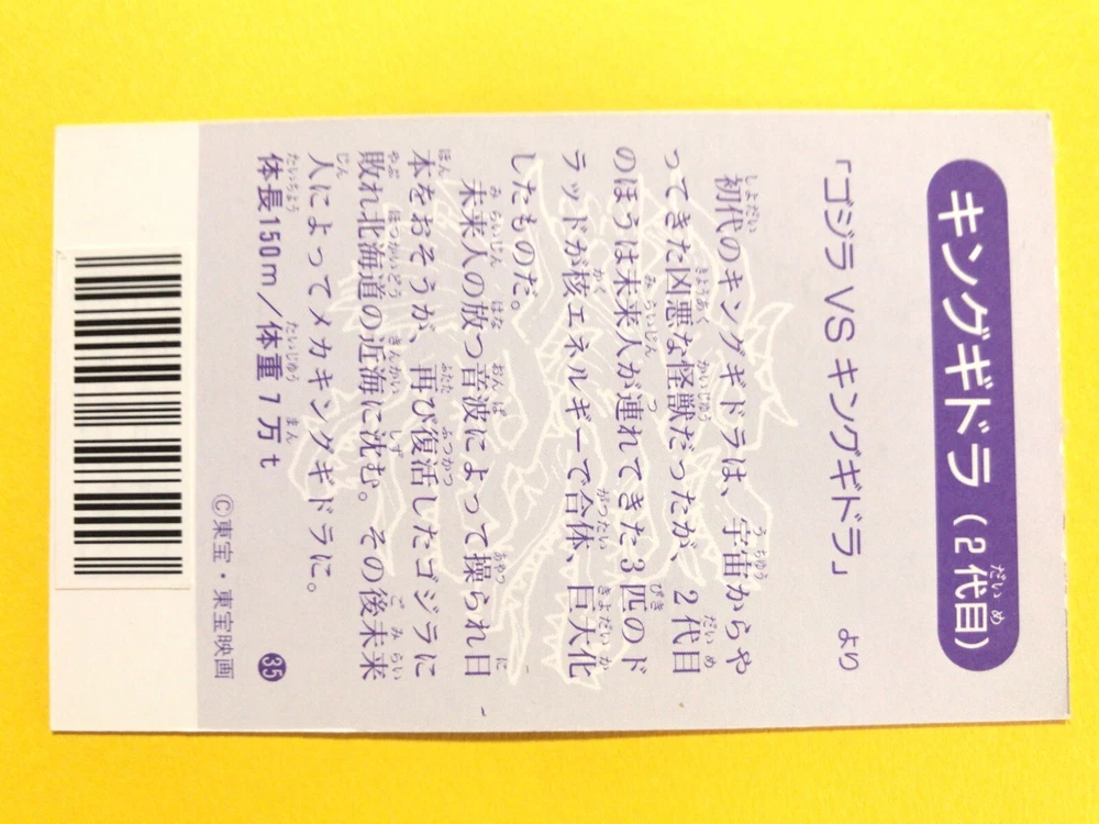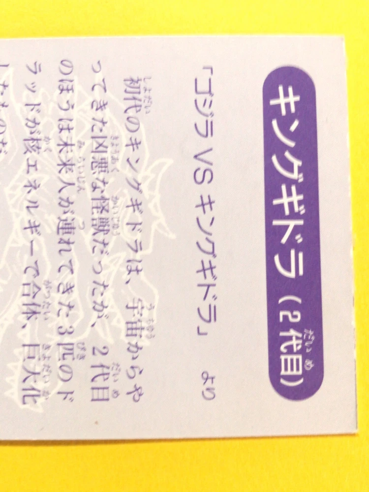 King Gidorah Second generation No.35 Mini menko card TOHO Japanese retro Description About This Items King Gidorah No. 35 Payment Please pay within 5 days after purchase. Shipping I send a product by Japan Post or Fedex If your address is in a remote area due to shipping company regulations, please pay additional shipping charges via Paypal. Shipping is only available to the address registered in eBay. If you want us to send another address, please change your address on eBay and then place an order. Shipping is available from Monday to Friday. Weekends are not available because freight (shipping) companies are closed. We do not mark merchandise values below value or mark items as [gifts] Japan, US and International government regulations prohibit such behavior. Worldwide Shipping Economy shipping (Japan Post) : Air mail No tracking number - Asia : 5-14 days - USA : 7-14 days - Middle East, Europe, South America, North America, Africa :14-21 days Standard Shipping (Japan Post) : Air mail with tracking number - Asia : 5-14 days - USA : 7-14 days - Middle East, Europe, South America, North America, Africa :14-21 days Expedited shipping (Fedex) : With tracking number - Asia, Europe, North America: 1-2 days - USA, Middle East, Southern Europe, South America, Africa: 3-7 days (However, depending on the destination country, you may not be able to select Economy Shipping.) (Please note that these are estimated delivery times and actual delivery times may vary depending on the contents of the package, customs procedures, local handling conditions, etc.) Packaging We ensure your item is well-protected with robust and careful packaging. Cards, Stickers, Tickets, and Booklets: We place them between cardboard sheets and seal them in a bag to prevent bending and moisture damage. Even if you purchase multiple items, each will be individually sleeved. Mini-Figures: They are wrapped in bubble wrap, placed in a capsule, sealed in a bag, and further protected with thick cardboard. Large Figures and Other Items: We pack them carefully to ensure no direct pressure is applied to the item. Cancellations & Returns Cancellation or returns will be accepted only if the item has an obvious problem that was not mentioned in the listing description. If that, please let us know within 30 days you got the item. About Us We are located in Japan. If you have any questions or request about items, please feel free to ask us. We would be happy if you could add our products to your collection. About Importer's Obligation Import duties, taxes, and charges are not included in the item price or shipping cost. These charges are the buyer's responsibility. Please check with your country's customs office to determine what these additional costs will be prior to bidding or buying. Thank you for your understanding.