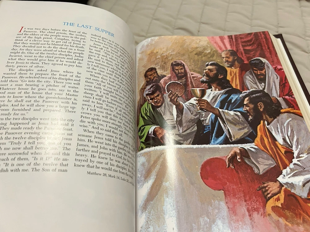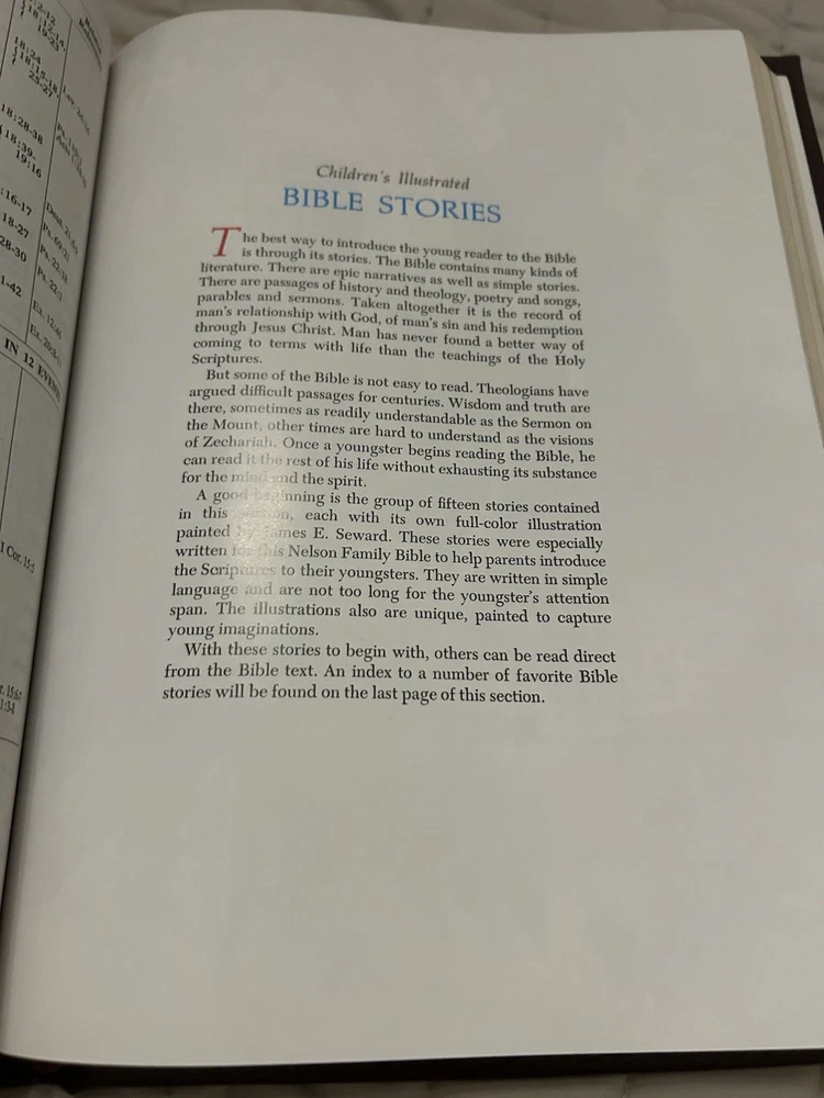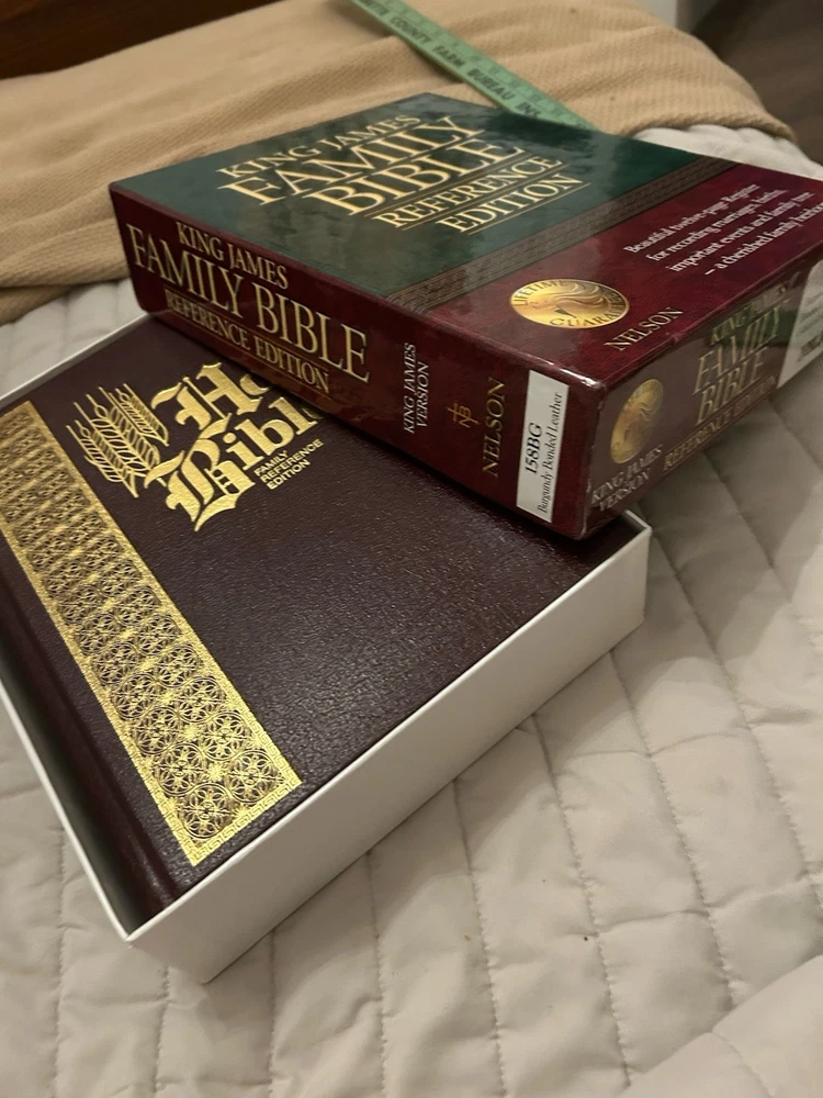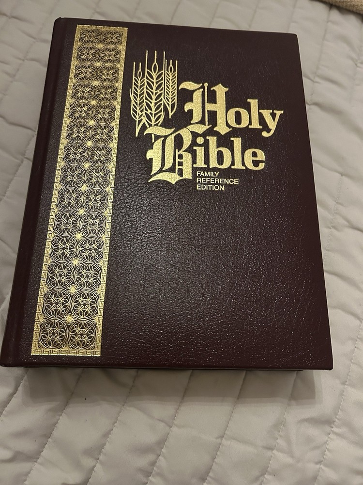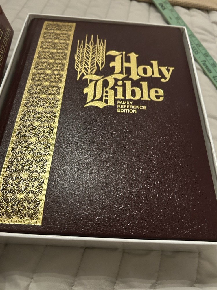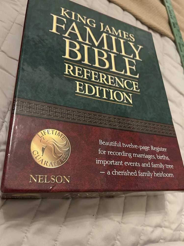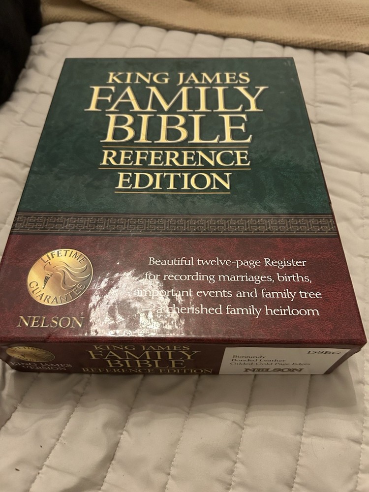 The King James Family Bible Reference Edition by Thomas Nelson is a vintage Bible published in 1971, featuring a hardcover format with leather binding and golden edges. This illustrated Bible, with a size of 9.5 x 12 inches, is intended for young adults, ages 9-12, and adults. The Bible offers a historical narrative in English, making it a valuable resource for those interested in spirituality, religious studies, and the history of the Bible.