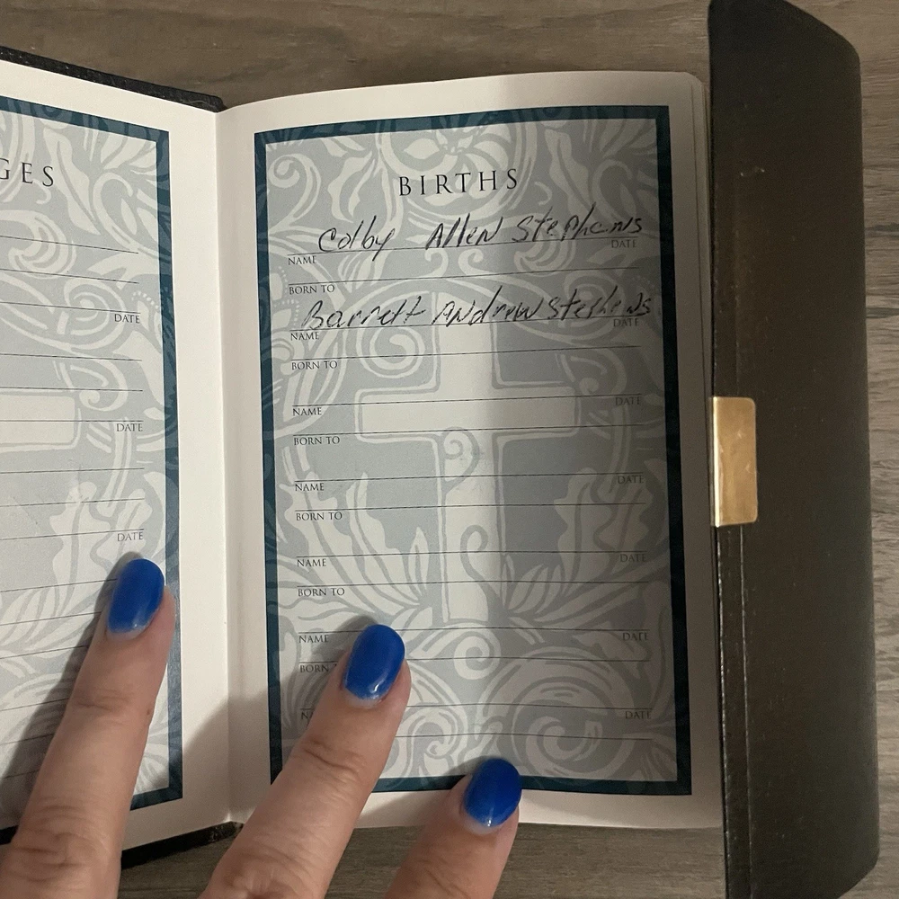 Overall excellent condition, but does have writing on the first two pages (name plate and “births” page). Otherwise, there is no writing and highlighting throughout. Imitation leather. Please see pics for details.