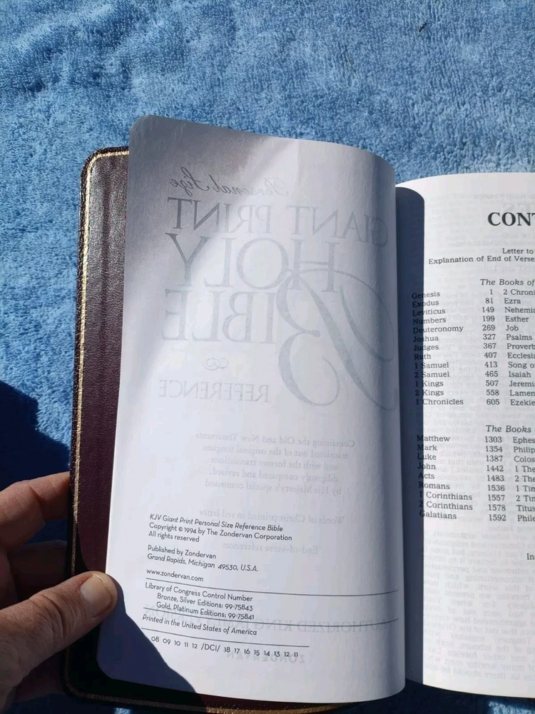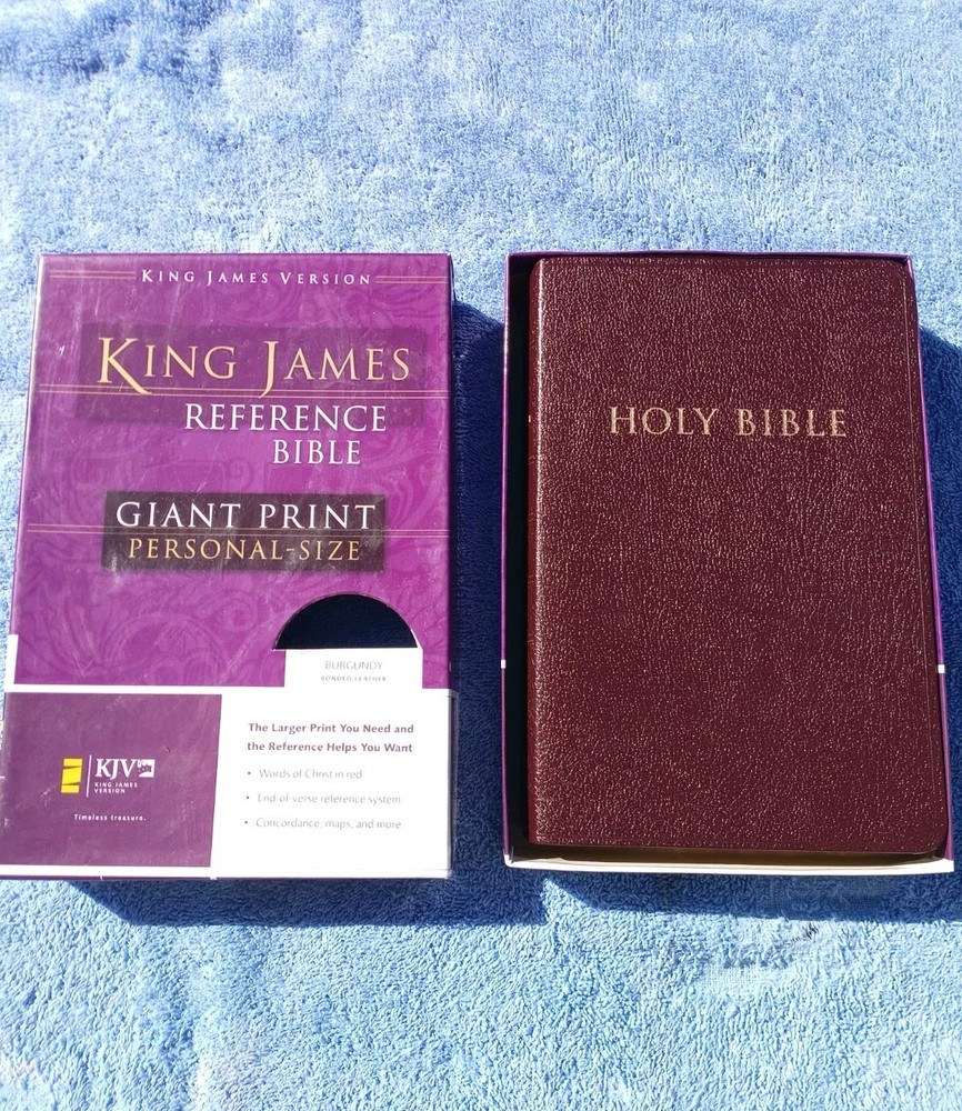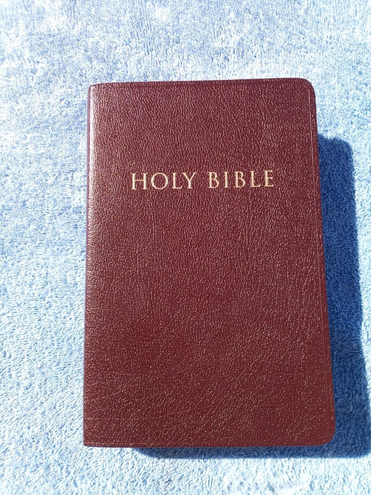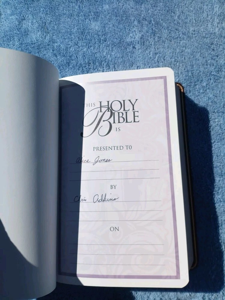 The Bible appears to be unread or very gently read and is in very good condition. The pages are crisp and sharp and clean with two names on the presentation page. The covers are excellent. The box is included and is very good.