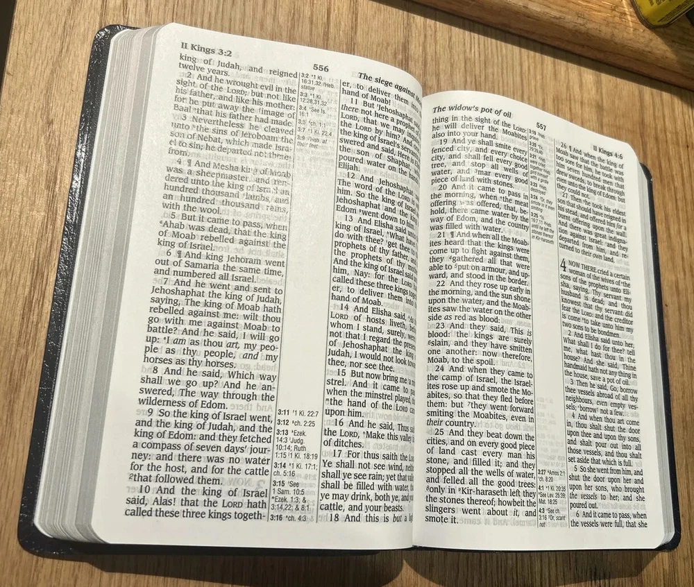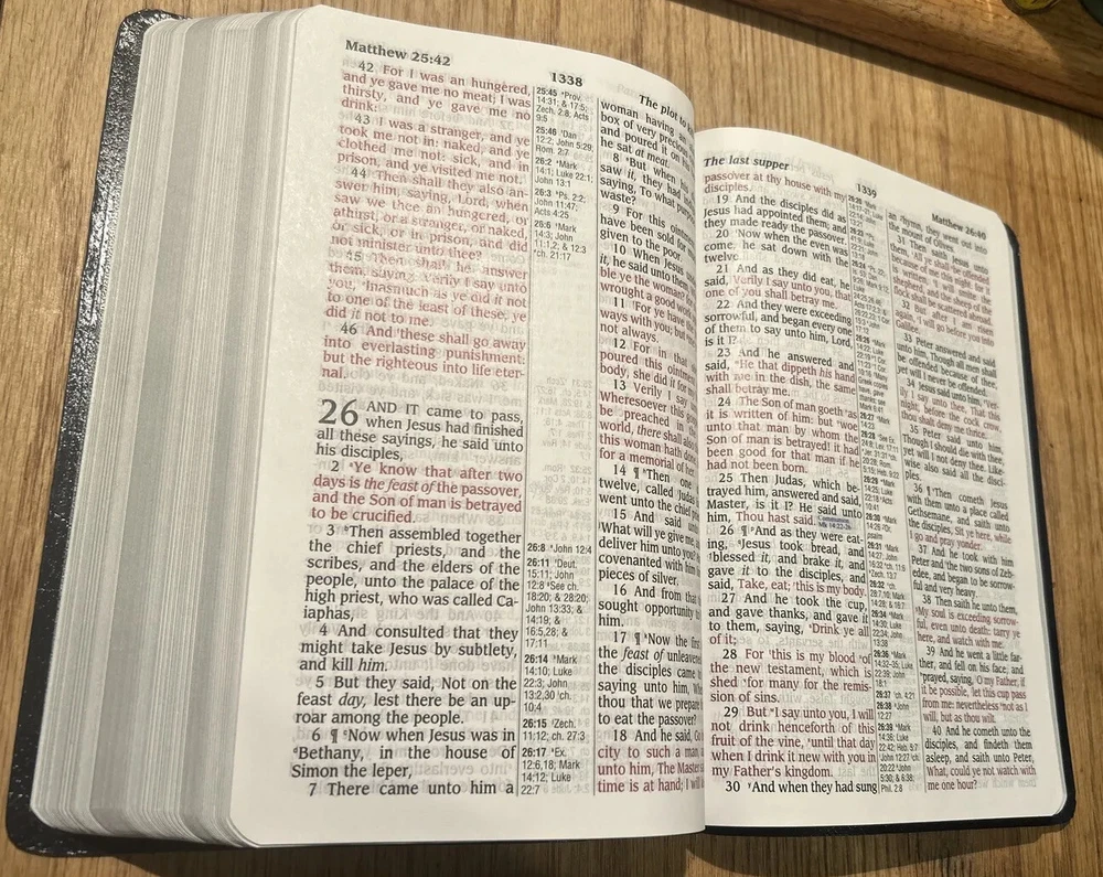 The Bible arrived exactly as described, and at a fair price. It was packaged very well so the Bible would not receive damage during the shipping process. Also, the seller shipped the Bible promptly. Highly recommend this seller.
