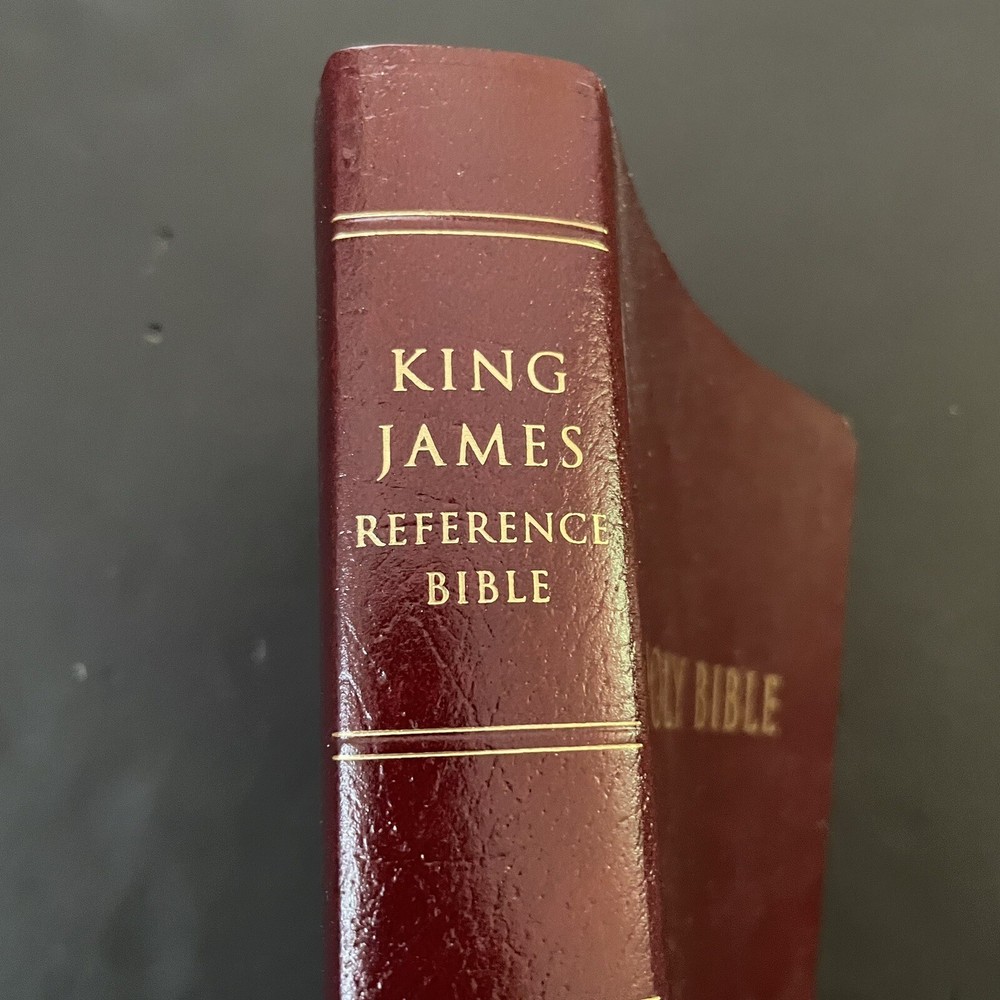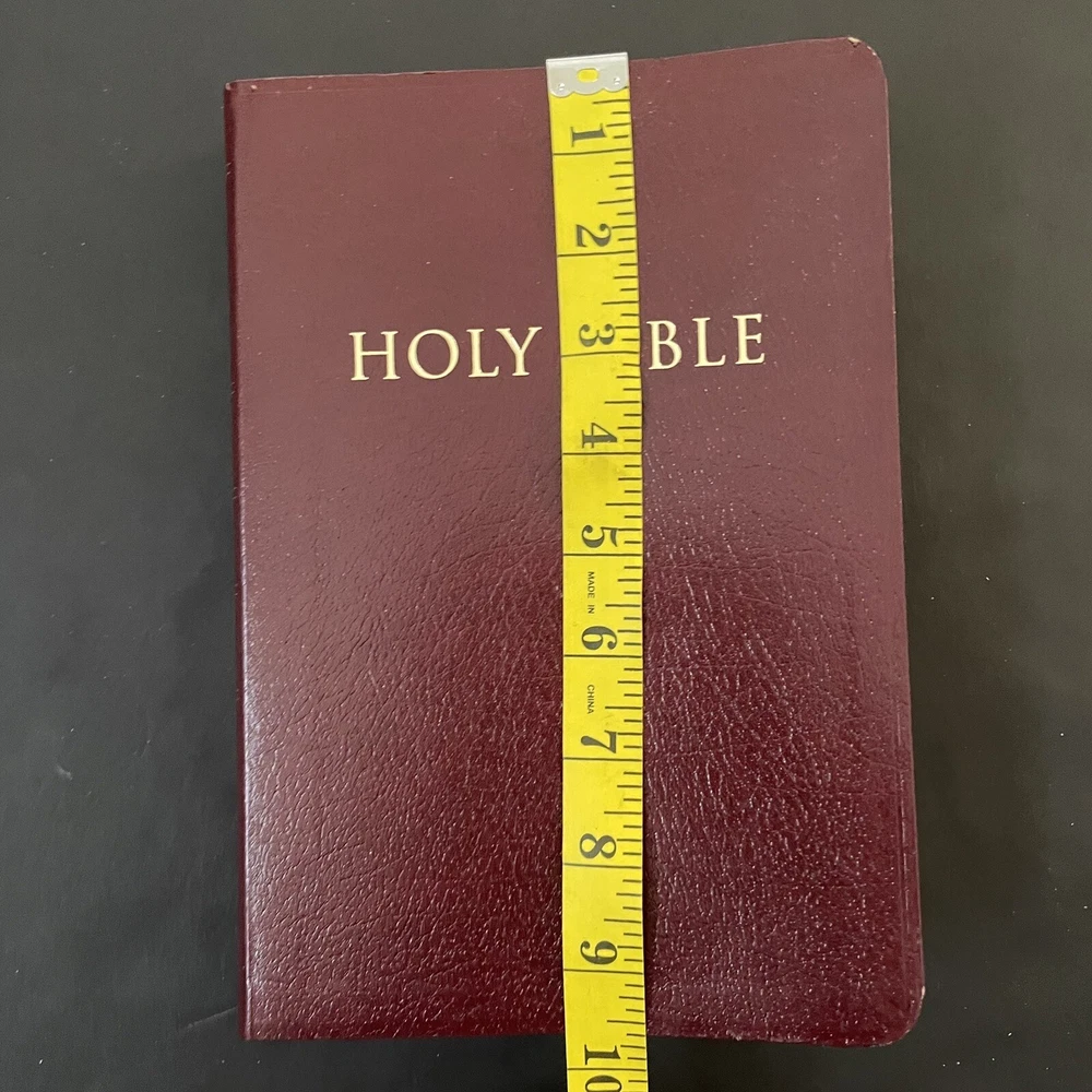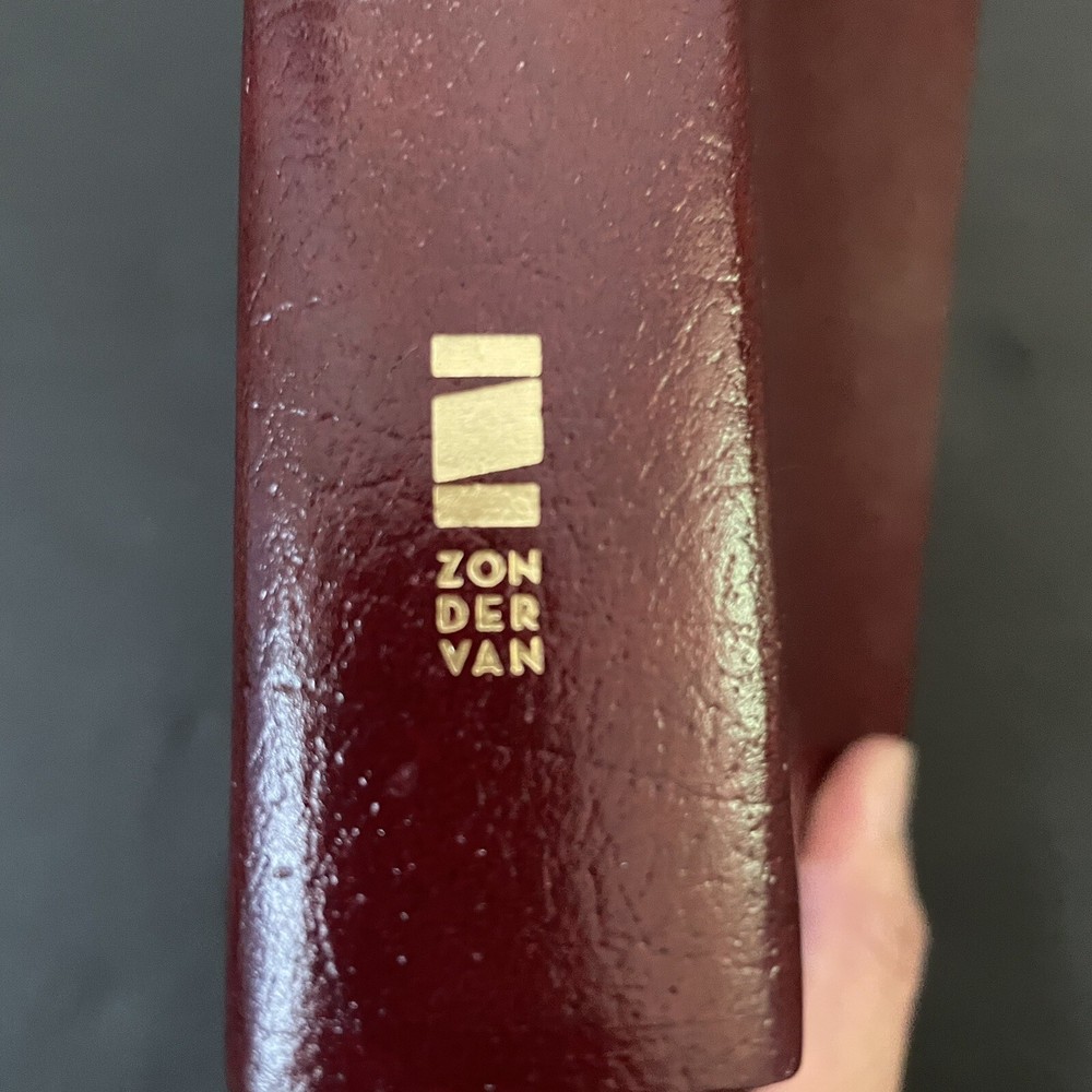 Excellent near new condition of the King James Version of the Bible, published by Zondervan. Large print is easy to read. Lovely color maps in the back. Reference column in the middle for ease of looking up references and explanations. Imitation leather cover. Spine is intact and book has not been used much, if ever. See pics for approximate dimensions.