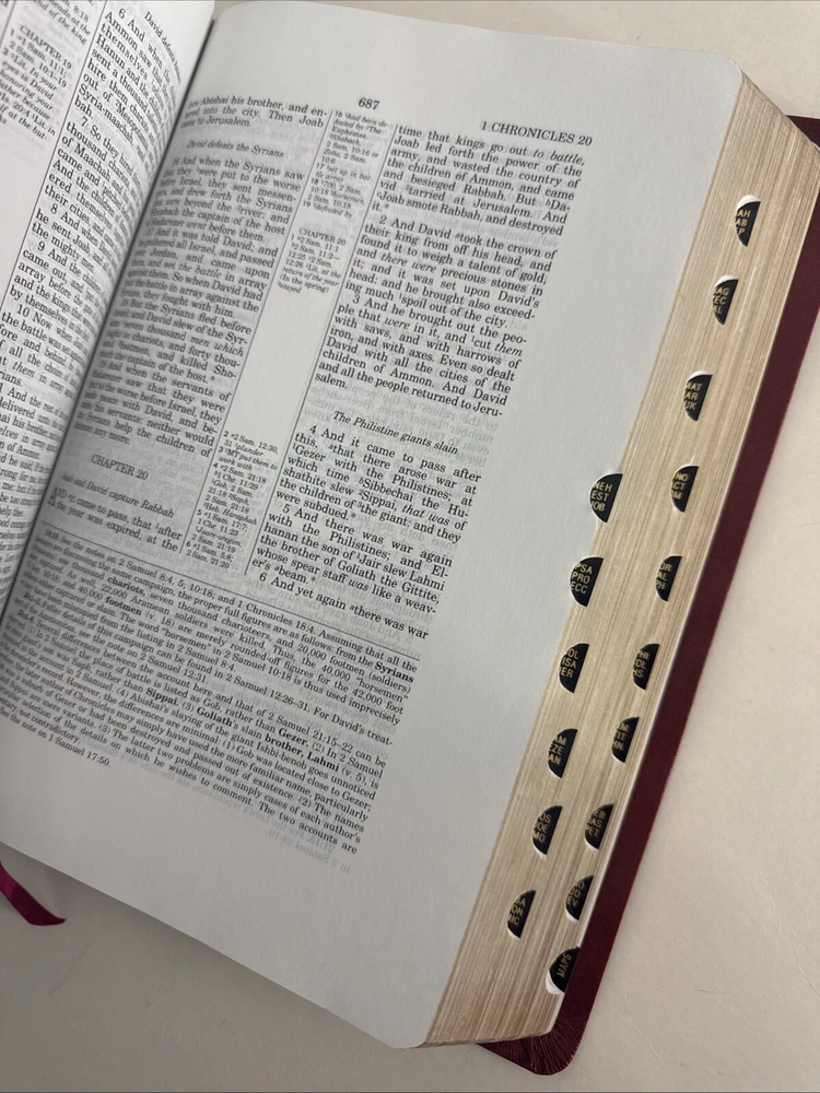 This Bible is a treasure for serious study—the wide margins are perfect for notes, and the maroon leather cover feels luxurious and durable. The indexed references make finding passages effortless, and the classic KJV translation stays true to its timeless beauty. A must-have for deep scripture exploration!