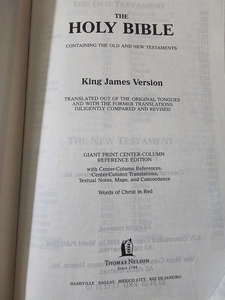 Thomas Nelson 2004 - King James Version - Giant Print Center-Column Reference Edition. Words of Christ in red. Please see photos for more details as the cover has some scuff marks.