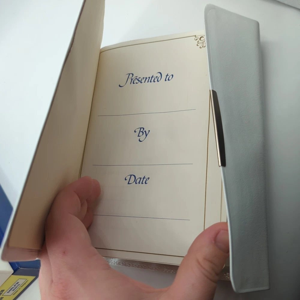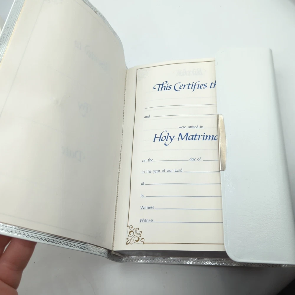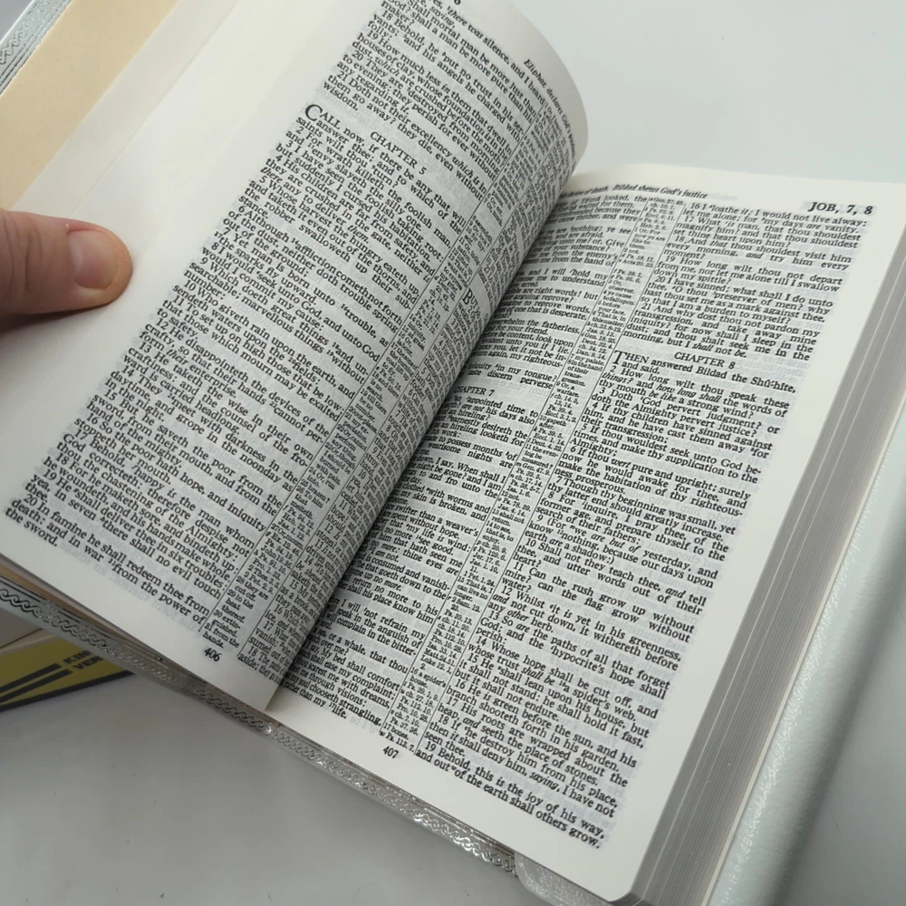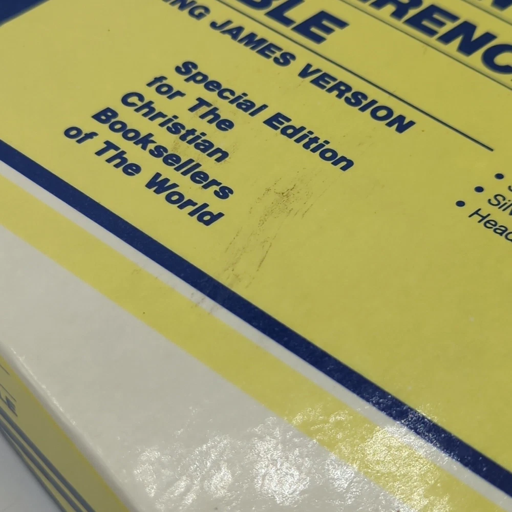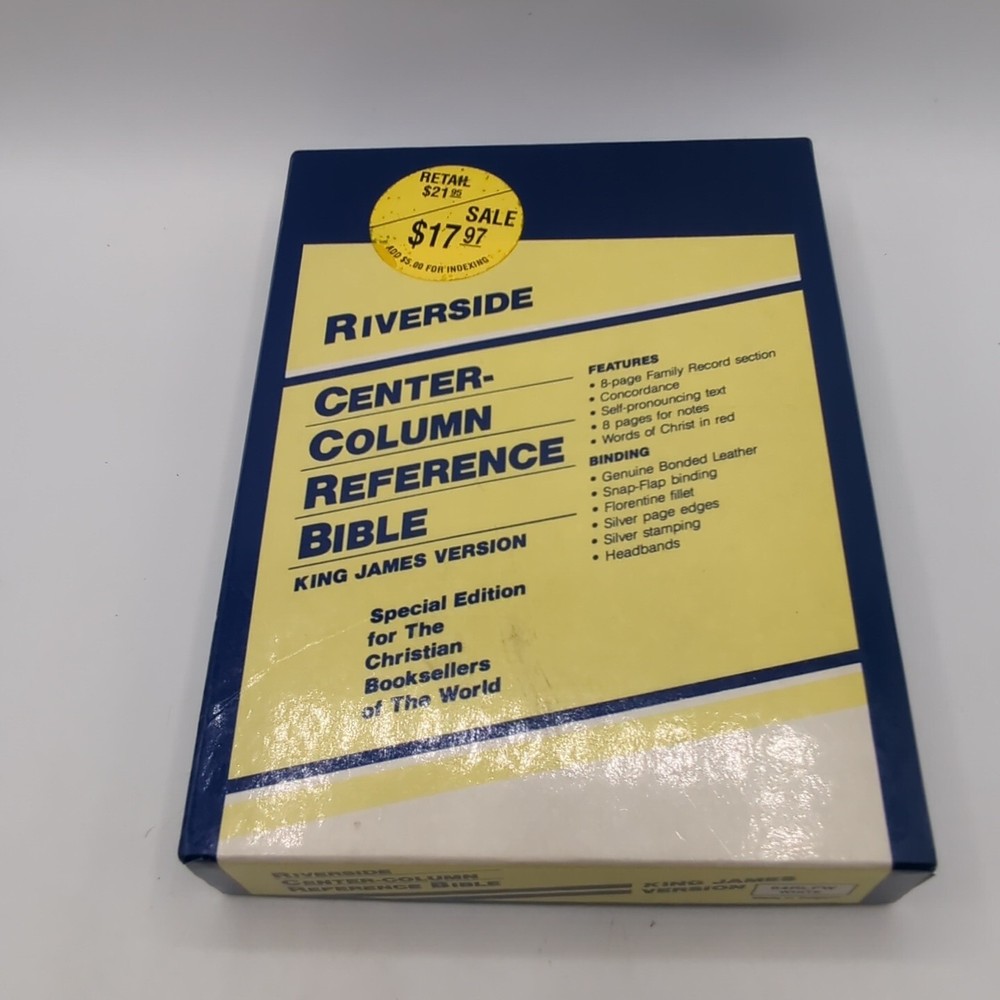 King James Version Holy Bible Center Column Reference~White Leather Snap Flap LN. Really clean bible. Doesn't look used at all. Box has a few marks from storage. Please see photos for condition.