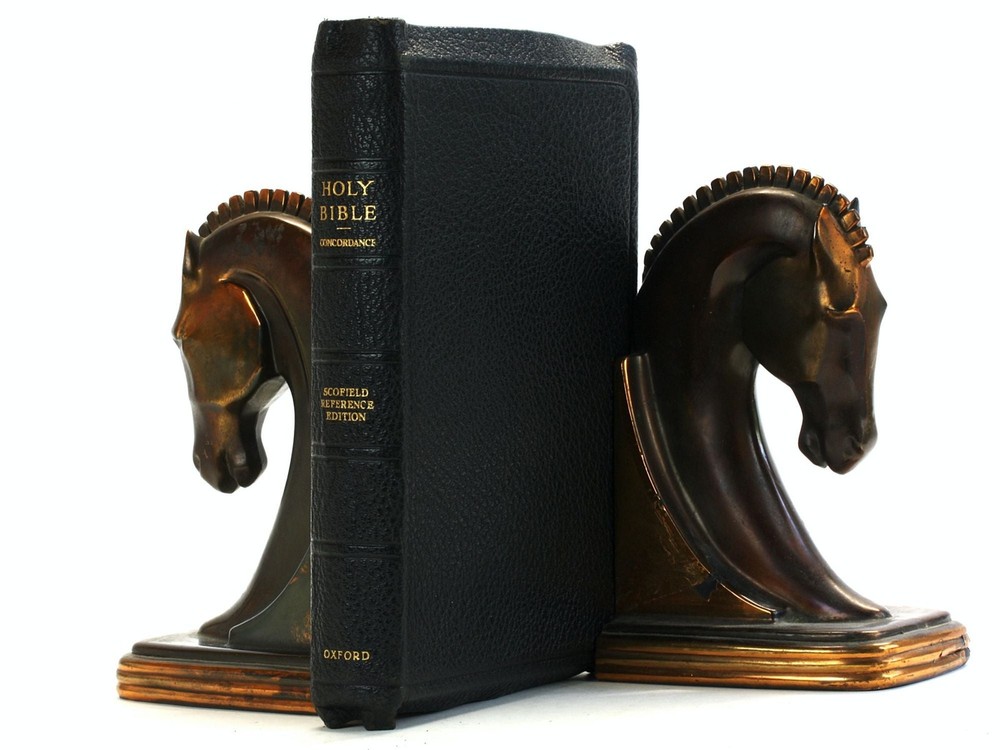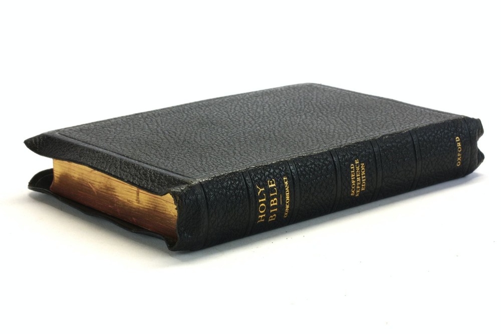 THE SCOFIELD REFERENCE BIBLE [India Paper Black Leather 8vo, Color Maps]: Holy Bible, Authorized Version Author: [King James Version] [KVJ]; C. I. Scofield Title: THE SCOFIELD REFERENCE BIBLE [India Paper Black Leather 8vo, Color Maps]: Holy Bible, Authorized Version Publication: Oxford University Press, 1933 Description: Leather. An extraordinary copy of an early Scofield printing with print code 'M 5 33' and no notice of subsequent copyright renewals after 1917 on the verso. This is the large-format OCTAVO setting with bold 'black-faced' Brevier font made additionally legible by the fine INDIA PAPER, the great innovation of Oxford University Press which combined strength, opacity, and thinness to a degree never match before or since. All edges ART GILT. Bound in 3/4 yapp BLACK CALF leather with bilt stamped spine lettering and blind-ruled panels. Silk-Sewed binding with overcast stitching at the first and last gatherings. viii, 3-1362pp. (Intro, OT, NT, Index); [2], 153-378 (Dictionary); 8 (Atlas Index), 12 color maps on 12 plates. Entirely clean and fresh; with just a touch of rubbing to the extremities, the leather remains very supple; the art gilt edges show just a bit of trivial scuffing but remain entirely bright with no markings whatsoever on the crisp, fresh pages. A very uncommon printing of the Scofield Bible, one of the most deluxe offered by the publisher with high-grade leather and printed on the sort of paper that has not been made for the better part of a century; additionally uncommon in such fine condition, as these Bibles tended to see extensive personal use--we rarely find one in such attractive condition. FINE. Seller ID: 508227 Subject: Religion Arches Bookhouse is a brick & mortar bookshop in North Portland, Oregon. We carry good books of all kinds with an emphasis on scholarly humanities books. We are open for browsing Monday-Saturday, 10–5:00. Terms All orders ship within two business days, packaged professionally with care. We offer combined shipping on multiple orders. All items are guaranteed to be as described or they may be returned within 30 days of receipt for a full refund. This listing was created by Bibliopolis.