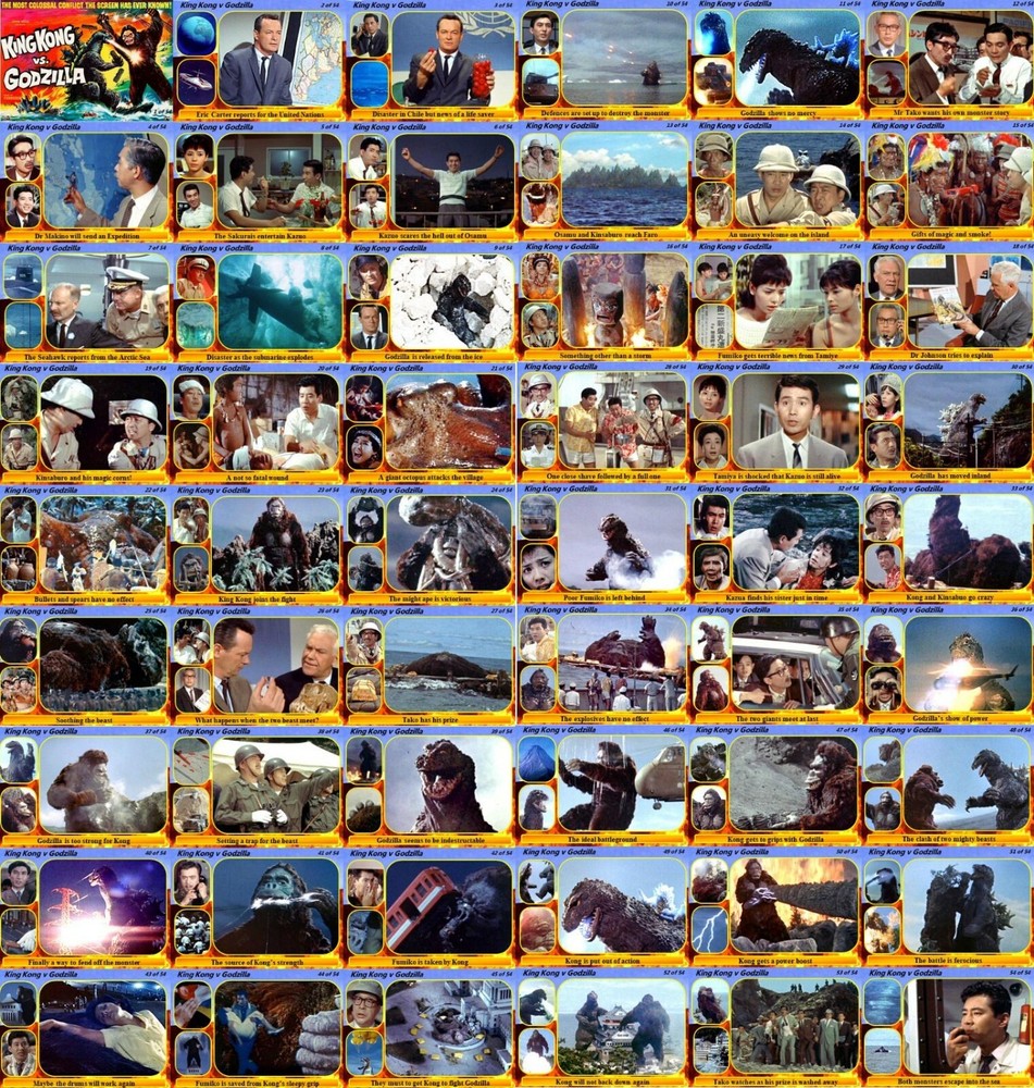 PLEASE NOTE THESE CUSTOM MADE CARDS MAY ONLY BE SUITABLE FOR COLLECTORS AS THEY CARRY SOUVENIR VALUE ONLY. FULL REFUND IF NOT SATISFIED. KING KONG vs GODZILLA (1962) MOVIE STORYBOARD TRADING CARDS This is a 54 card set. This set represents the 1962 cult monster movie King Kong vs Godzilla. This is the US version adapted from the Toho Studio original. Godzilla is terrorising Japan so the Government decide to use King Kong to defeat the creature in a monster battle. Stars Tadao Takashima, Yu Fujiki, Mie Hama and Ichiro Arishima. The story of the movie is told throughout the reverse of the cards. An 18 card Character set is also available Please check out my ebay shop where you will find over 1000 different sets as well as other collectibles. Cards are 90mm wide and 60mm high and will be sent out in Ultra Pro plastic trading card wallets within strengthened envelopes. I always combine and reduce postage on multiple orders. Thank you for looking