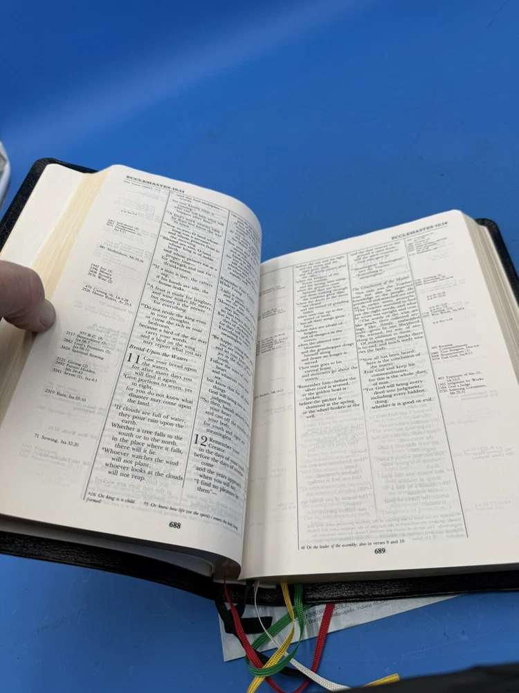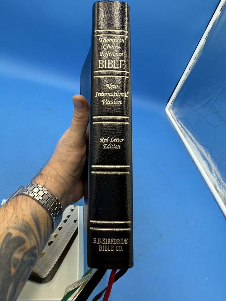 This Kirkbride Bible Company reference Bible is a must-have for any adult looking to study the Bible. With its large print and leather format, it is perfect for any reader. The Thompson Chain-Référence Bibles feature a nonfiction narrative type and are published in English by Kirkbride Bible Company, Incorporated. The original language of the Bible is also in English, making it accessible to a wide audience. The large print and type features make it easy to read and study, while the special attributes of the leather format add a touch of elegance to the Bible. This Bible is perfect for anyone interested in biblical studies and general topics related to religion. Get your hands on this timeless piece of literature today!