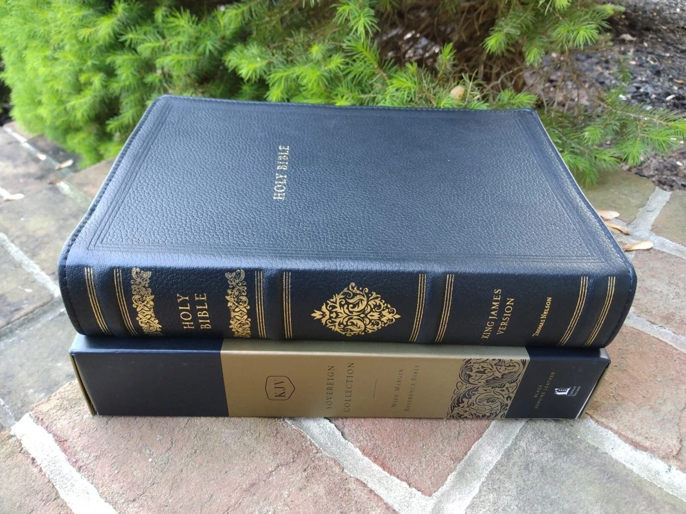 Feel free to ask questions. I try to return and answer your questions in a timely manner and as soon as I am able. Kjv, Wide-Margin Reference Bible, Sovereign Collection Genuine Leather, Black font size 9 point Measures 7.1" x 10" x 2" Red letter Smyth-sewn binding concordance and full-color maps much more (see photo of back of bible) Feel free to ask questions. I try to return and answer your questions in a timely manner and as soon as I am able. Visit my eBay store at aboundingjoy66 NO RETURNS. Please buy responsibly.