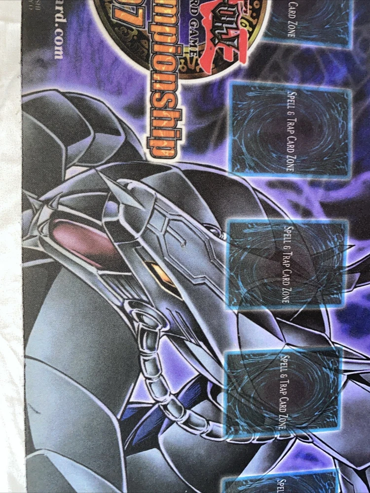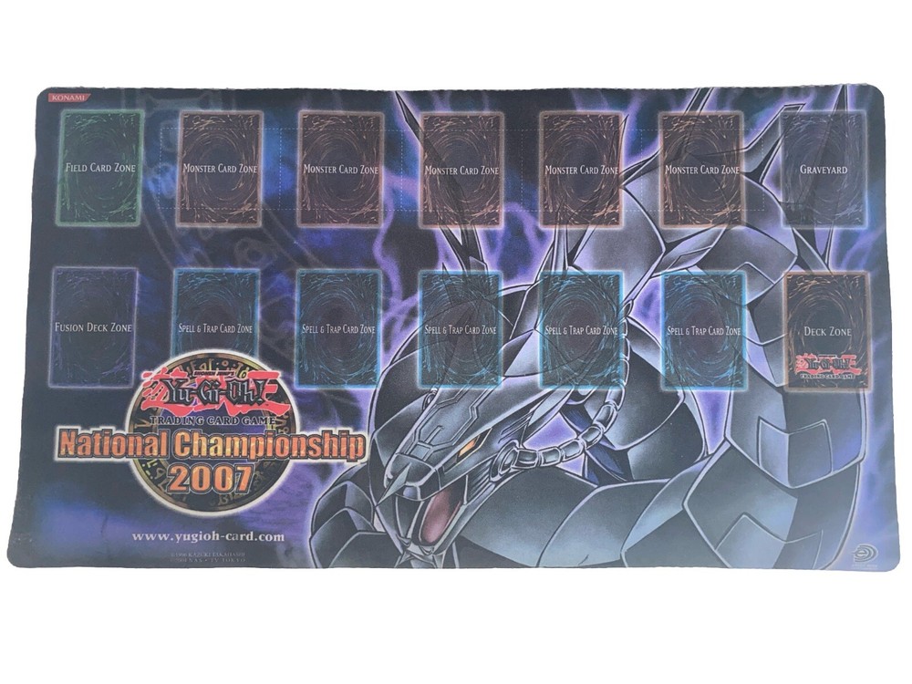 This Konami Yu-Gi-Oh! National Championship 2007 Cyber Dragon Playmat is a must-have for any fan of the franchise. It features a non-slip backing and round corners, making it a perfect addition to your CCG collection. The playmat is made of high-quality rubber and is usable as a mousepad. This vintage playmat is from the 2007 National Championship and features the iconic Cyber Dragon character. It is perfect for players of the Yu-Gi-Oh! TCG and comes with one item. Add this standard playmat to your collection today and show off your love for the game.