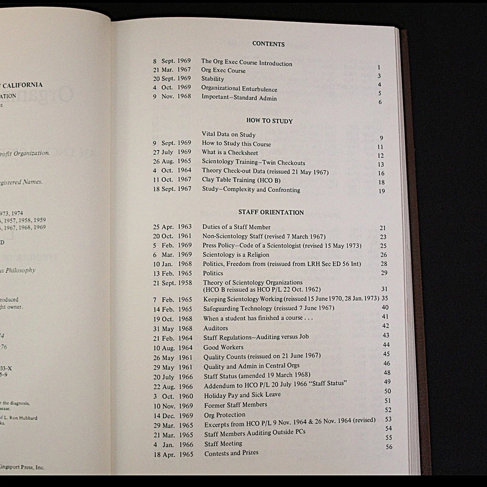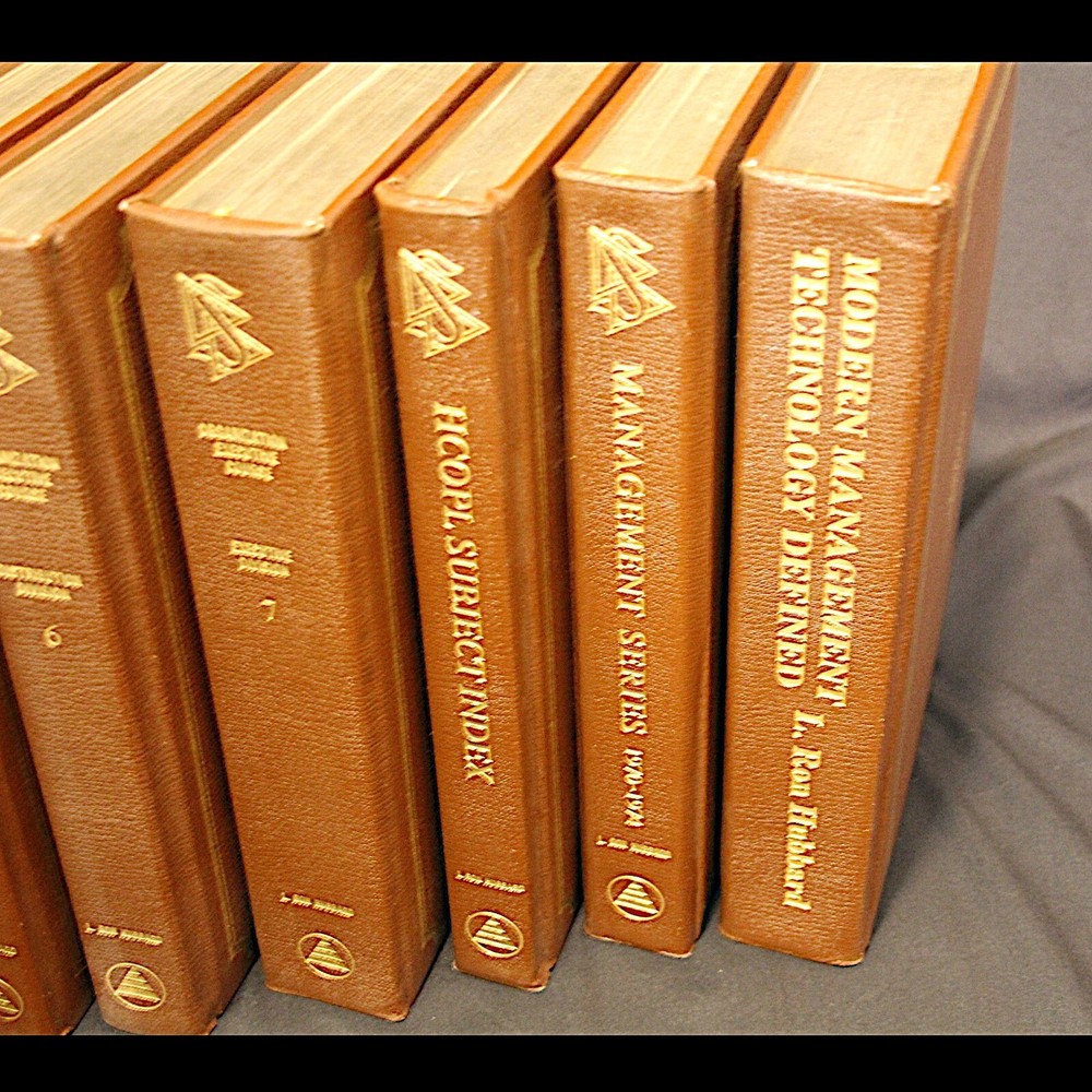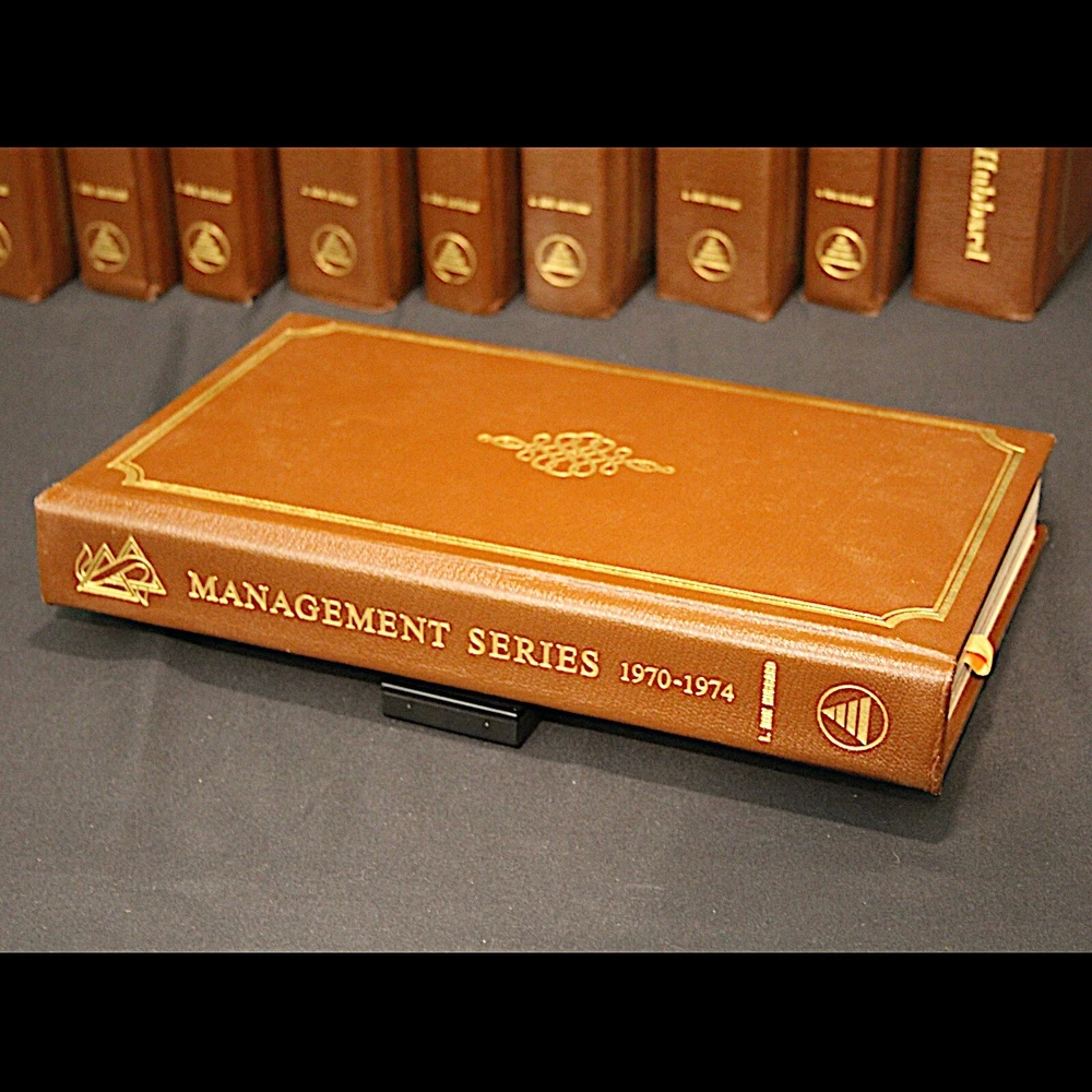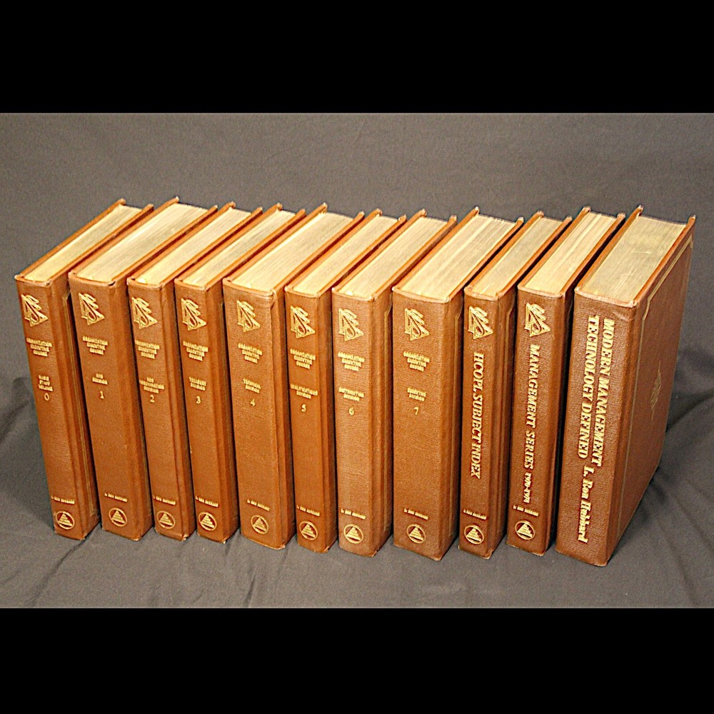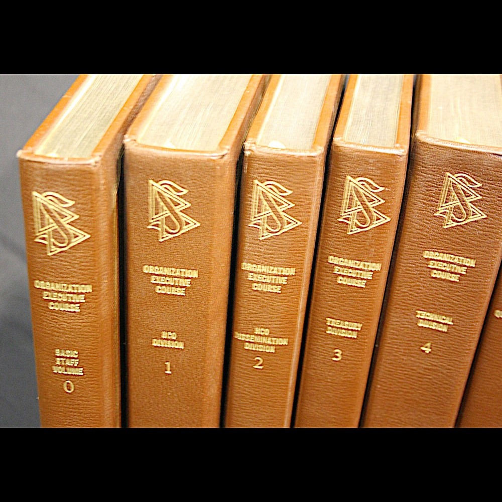 **RARE** L Ron Hubbard Books - Original Organization Executive Course Volumes - Leatherbound Collectors Edition Number 18/100 - Published 1974 Description: *VERY RARE* 1974 Leatherbound Collector's Editions of the original OEC Vols. Includes: Basic Staff Hat Vol. 0 Vols 1-7 Subject Index Vol Management Series 1970 - 1974 "Modern Management Technology Defined" Admin Dictionary Fundamental management & operational policies for a Scientology organization. Basics of operating any organization or business. ** ITEM CONDITION: ** Used books. Very good condition. No underlining or highlighting in pages. Binding in very good condition. Slight wear to gilt end pages. Only $2,398.98 at LRH-Collection! ( * Very Good * condition price ) Please Note: Shipping discount for combined shipping on items! **Package will be covered by shipping insurance. Signature required on delivery.** At LRH-Collection I stock a wide inventory of Dianetics and Scientology materials. If you don't see the exact item you want, please message me. It's a good chance I have it. More Cool L Ron Hubbard Books, Lectures and Collectibles Here!
