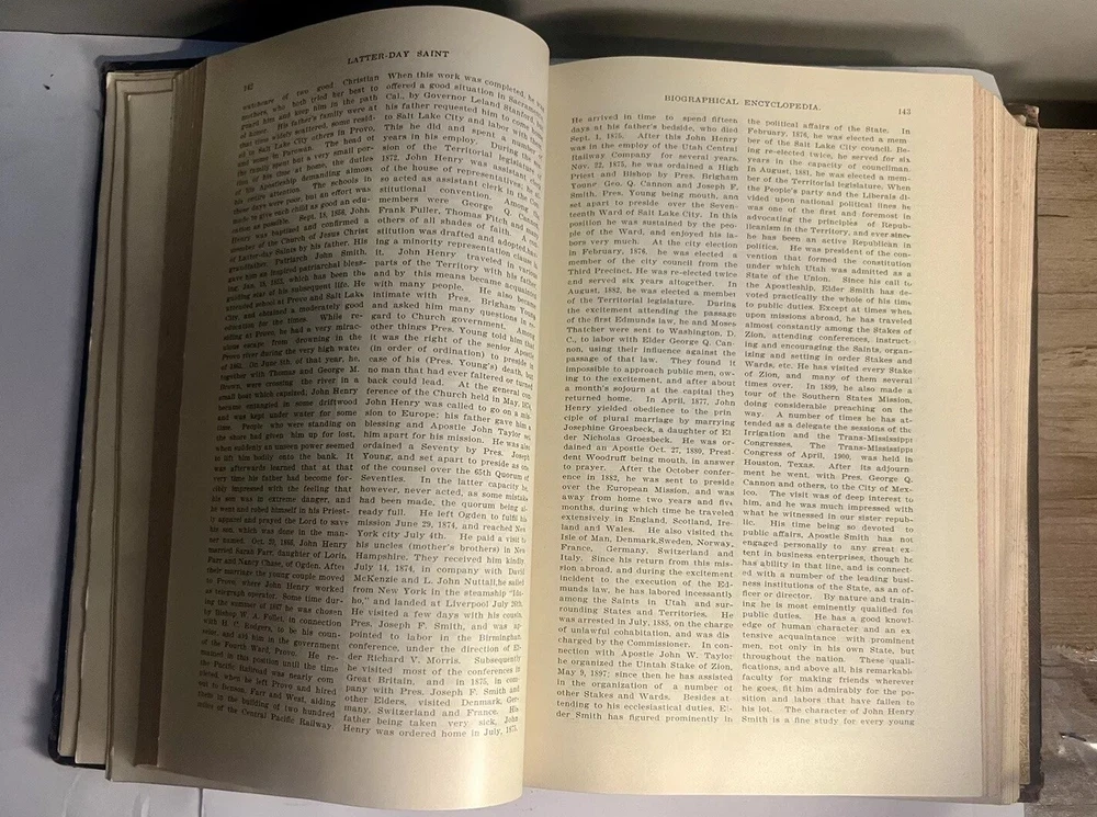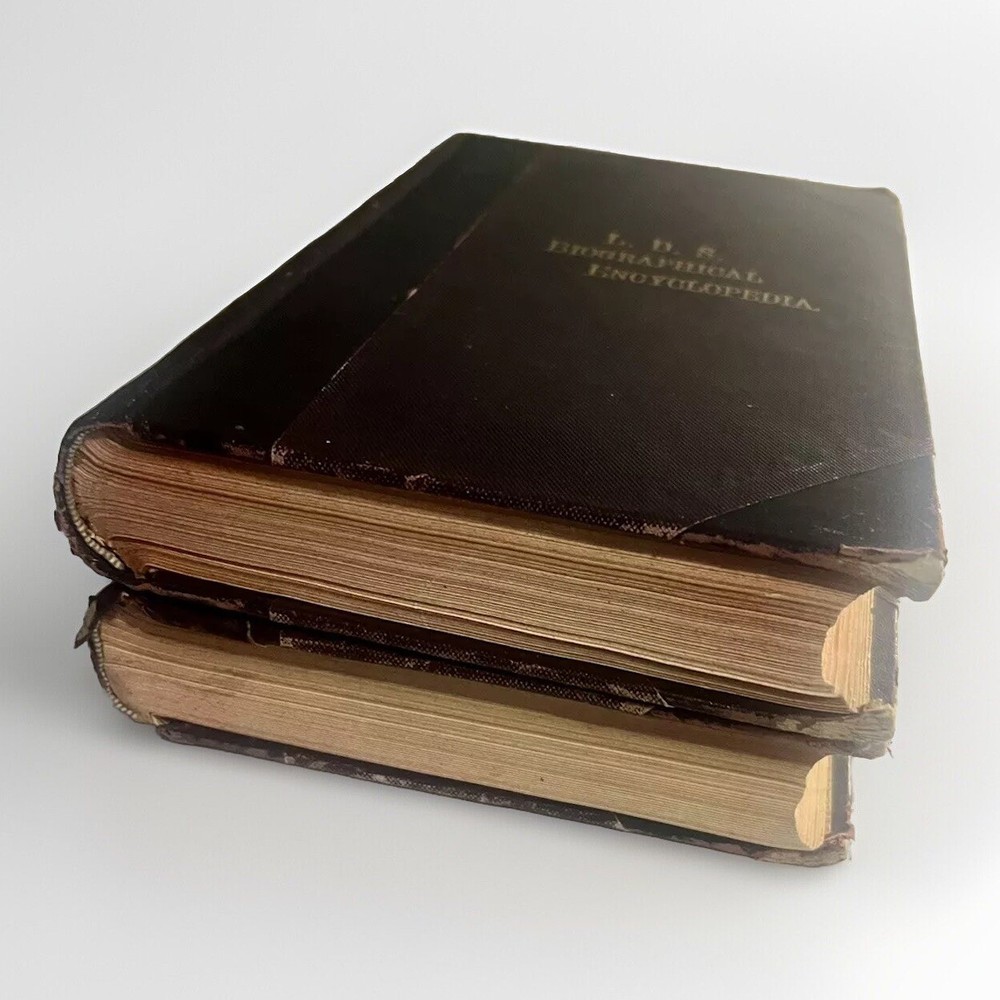 L.D.S. Biographical Encyclopedia, Vol. 1 & Vol. 2 by A. Jenson, 1901/1914 First Edition (+FREE SHIPPING) The "L.D.S. Biographical Encyclopedia Volume 1" is a vintage hardcover book written by Andrew Jenson in English. It is the first edition published in 1901 by Andrew Jenson History Company. The book is part of a series and contains biographical information about Mormons and Christianity, spanning 824 pages. This historical nonfiction book is aimed at adult readers and features a leather-bound cover. A true piece of history to be owned, rare set! Please see pictures for details and condition. Feel free to message with any questions you may have.
