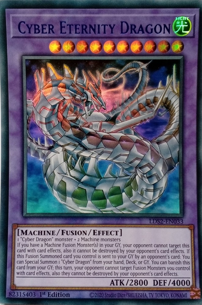 LDS2-EN033 CYBER ETERNITY DRAGON BLUE ULTRA RARE 1ST EDITION ALL YU-GI-OH CARDS I SELL ARE KONAMI TOURNAMENT LEGAL. CARDS ARE ALL NEAR MINT TO LIGHTLY PLAYED CONDITION POSTAGE IS FREE SO YOU CAN BUY AS MANY CARDS AS YOU WANT FROM US AND NOT PAY A PENNY POSTAGE. IF YOU HAVE ANY QUESTIONS PLEASE FEEL FREE TO CONTACT ME. Track Page Views Wi4.9 Auctiva's FREE Counter