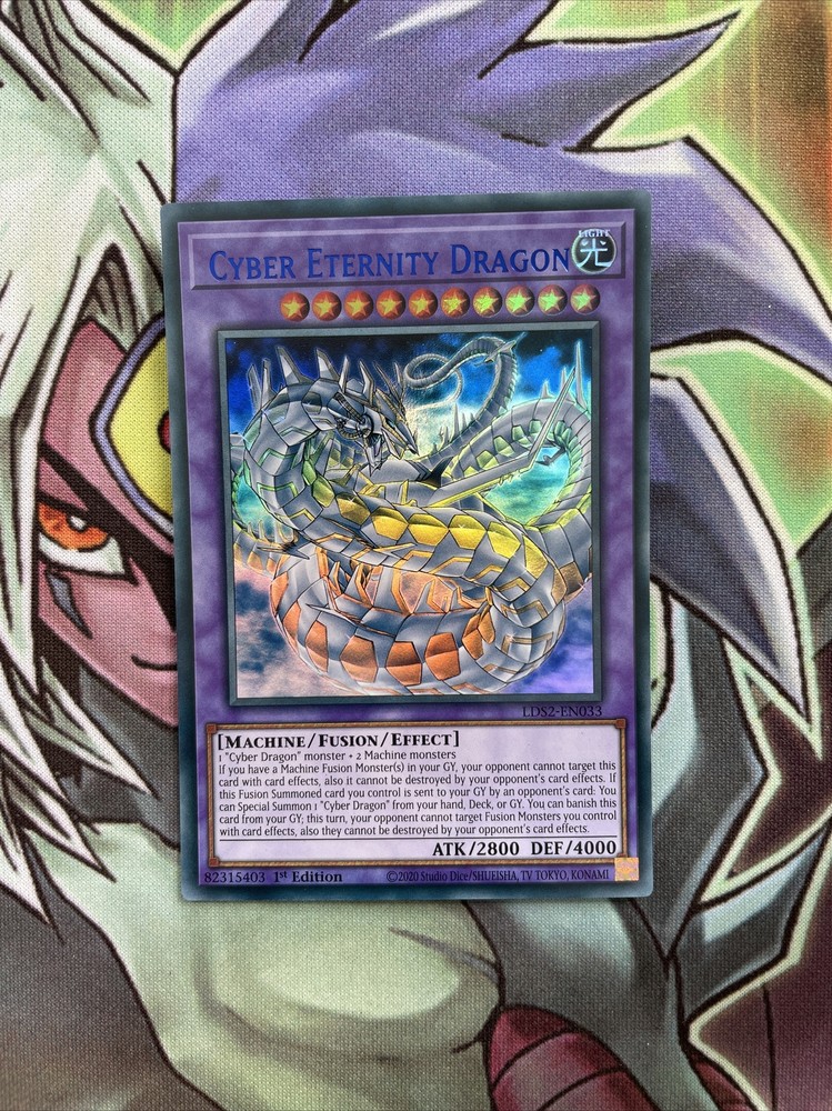 Listing Template 2018 Home About Us Shipping Returns View Feedback Contact Us LDS2-EN033 Cyber Eternity Dragon Blue Rare 1st Edition NM Yugioh Card This card is in near mint condition. Please check the photos for more questions on condition or please just ask! Thanks for viewing! Please check out my eBay store for more cards and to use our promotional offers! We offer COMBINED INTERNATIONAL SHIPPING! Please contact us and ask us to combine your shipment! We provide UK free postage! All of our cards are sleeved, with a taped Toploader to ensure maximum protection, and the best overall condition of your cards! Do you want to earn extra cash for your old cards? Clear out your binder and send us photos of what you have! We will happily send you an offer and sort out postage to make it hassle free. There's no harm in trying! Message us now! You will receive these cards in very good condition as shown! Thanks for looking! Free delivery. Honest Sellers. We care about your cards and your satisfaction. About Us Based in United Kingdom, twintraders has been an eBay member since 02 Mar, 2006 Contact Us The best way to contact us is through the eBay messaging system. You can send us a message by using the "Questions and answers" section towards the bottom of the page. Feedback We will always help you to have a 100% positive happy buying experience. Contact us if you are unhappy about any aspect of your purchase from us. We only want five star feedback from you so buy with confidence. View Our Categories