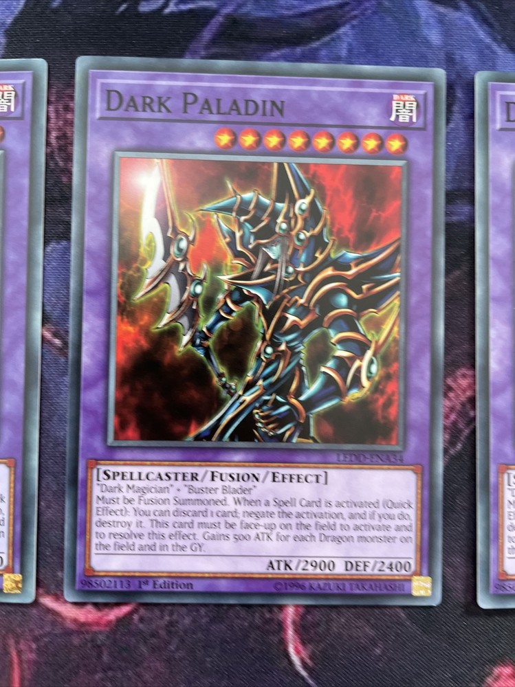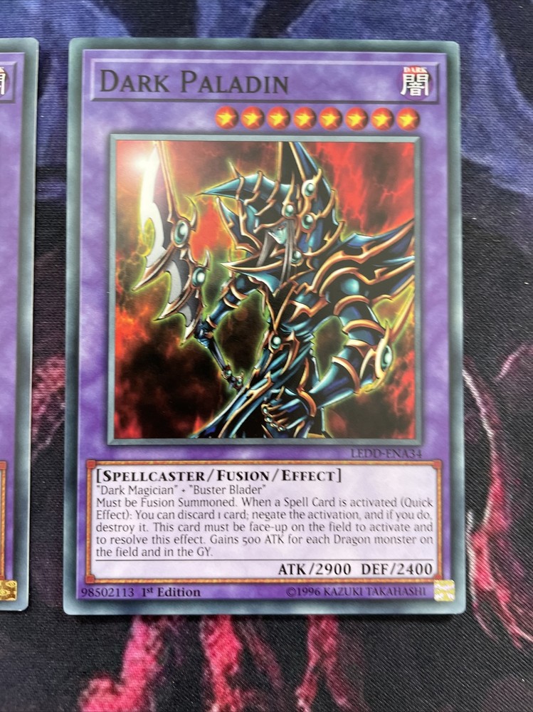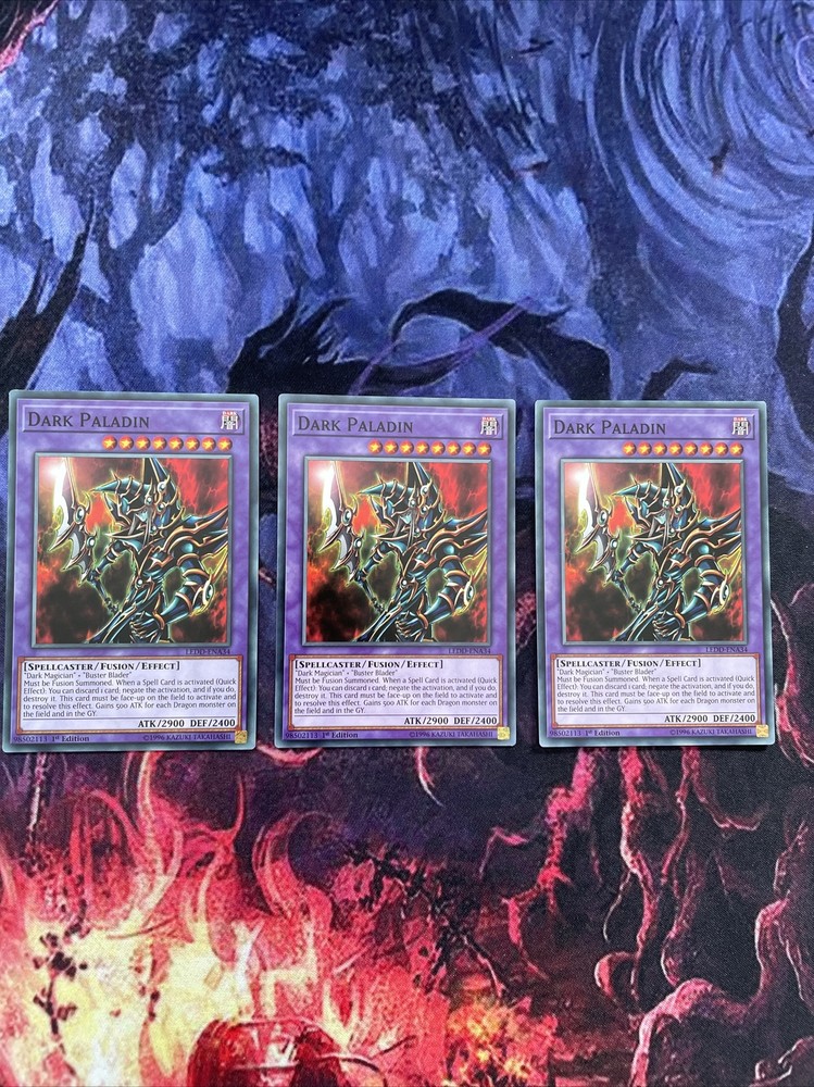 This playset is mixed edition (you will receive a mixture of unlimited and 1st edition cards) Listing Template 2018 Home About Us Shipping Returns View Feedback Contact Us LEDD-ENA34 x3 Dark Paladin 1st Edition Mint YuGiOh Card These cards are in very good condition. Please check the photos for more questions on condition or please just ask! Thanks for viewing! Please check out my eBay store for more cards and to use our promotional offers! We offer COMBINED INTERNATIONAL SHIPPING! Please contact us and ask us to combine your shipment! We provide UK free postage! All of our cards are sleeved, with a taped Toploader to ensure maximum protection, and the best overall condition of your cards! Do you want to earn extra cash for your old cards? Clear out your binder and send us photos of what you have! We will happily send you an offer and sort out postage to make it hassle free. There's no harm in trying! Message us now! You will receive these cards in very good condition as shown! Thanks for looking! Free delivery. Honest Sellers. We care about your cards and your satisfaction. About Us Based in United Kingdom, twintraders has been an eBay member since 02 Mar, 2006 Contact Us The best way to contact us is through the eBay messaging system. You can send us a message by using the "Questions and answers" section towards the bottom of the page. Feedback We will always help you to have a 100% positive happy buying experience. Contact us if you are unhappy about any aspect of your purchase from us. We only want five star feedback from you so buy with confidence. View Our Categories Check out our discounts/deals for better value!