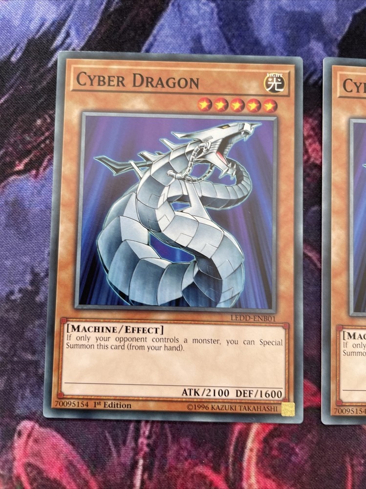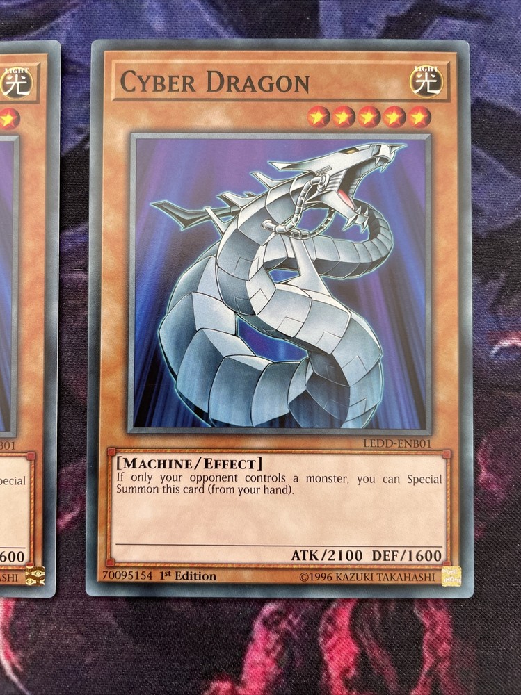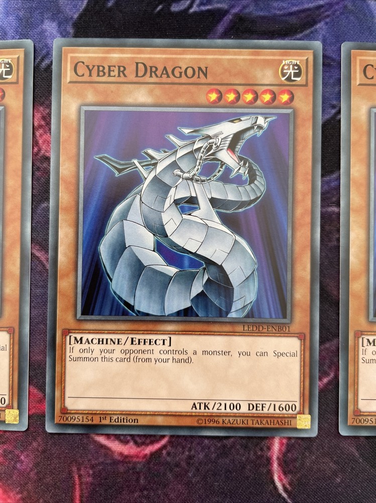 Listing Template 2018 Home About Us Shipping Returns View Feedback Contact Us LEDD-ENB01 3x Cyber Dragon 1st Edition YuGiOh Card These cards are in very good condition. Please check the photos for more questions on condition or please just ask! Thanks for viewing! Please check out my eBay store for more cards and to use our promotional offers! We offer COMBINED INTERNATIONAL SHIPPING! Please contact us and ask us to combine your shipment! We provide UK free postage! All of our cards are sleeved, with a taped Toploader to ensure maximum protection, and the best overall condition of your cards! Do you want to earn extra cash for your old cards? Clear out your binder and send us photos of what you have! We will happily send you an offer and sort out postage to make it hassle free. There's no harm in trying! Message us now! You will receive these cards in very good condition as shown! Thanks for looking! Free delivery. Honest Sellers. We care about your cards and your satisfaction. About Us Based in United Kingdom, twintraders has been an eBay member since 02 Mar, 2006 Contact Us The best way to contact us is through the eBay messaging system. You can send us a message by using the "Questions and answers" section towards the bottom of the page. Feedback We will always help you to have a 100% positive happy buying experience. Contact us if you are unhappy about any aspect of your purchase from us. We only want five star feedback from you so buy with confidence. View Our Categories Check out our discounts/deals for better value!