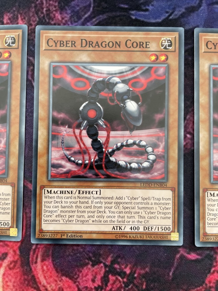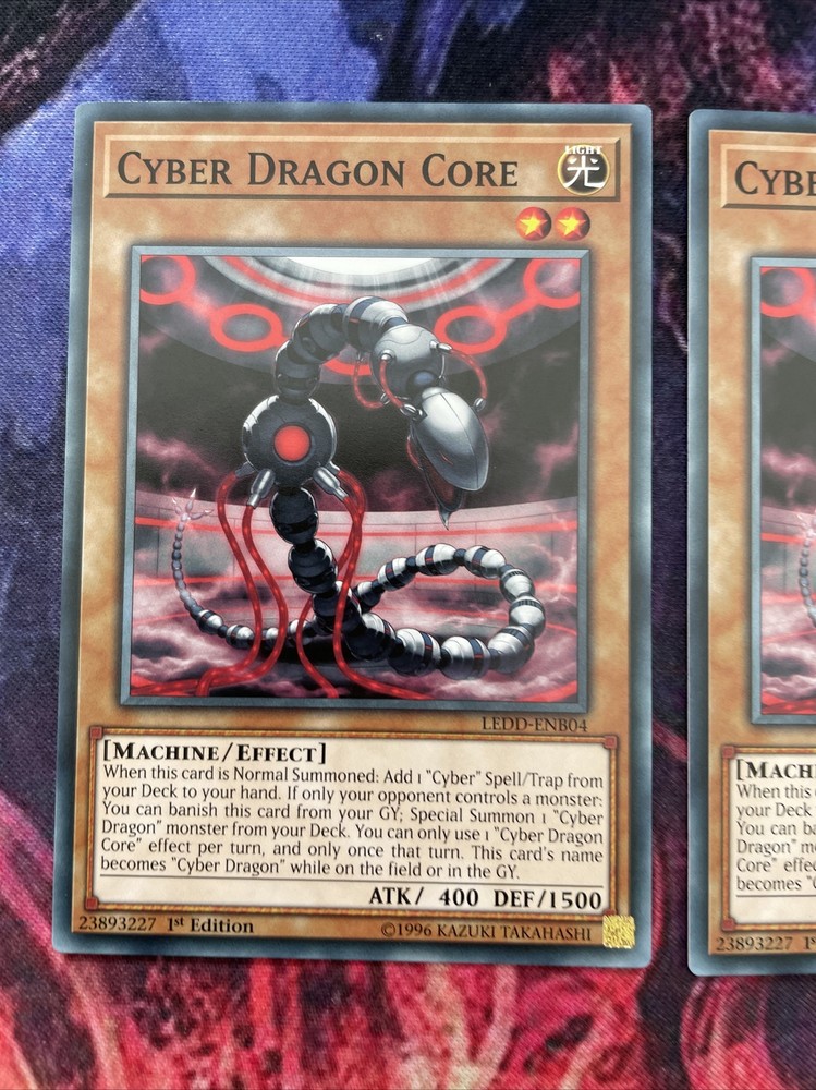 Listing Template 2018 Home About Us Shipping Returns View Feedback Contact Us LEDD-ENB04 Yugioh 3x Cyber Dragon Core 1st Edition These cards are in very good condition. Please check the photos for more questions on condition or please just ask! Thanks for viewing! Please check out my eBay store for more cards and to use our promotional offers! We offer COMBINED INTERNATIONAL SHIPPING! Please contact us and ask us to combine your shipment! We provide UK free postage! All of our cards are sleeved, with a taped Toploader to ensure maximum protection, and the best overall condition of your cards! Do you want to earn extra cash for your old cards? Clear out your binder and send us photos of what you have! We will happily send you an offer and sort out postage to make it hassle free. There's no harm in trying! Message us now! You will receive these cards in very good condition as shown! Thanks for looking! Free delivery. Honest Sellers. We care about your cards and your satisfaction. About Us Based in United Kingdom, twintraders has been an eBay member since 02 Mar, 2006 Contact Us The best way to contact us is through the eBay messaging system. You can send us a message by using the "Questions and answers" section towards the bottom of the page. Feedback We will always help you to have a 100% positive happy buying experience. Contact us if you are unhappy about any aspect of your purchase from us. We only want five star feedback from you so buy with confidence. View Our Categories Check out our discounts/deals for better value!