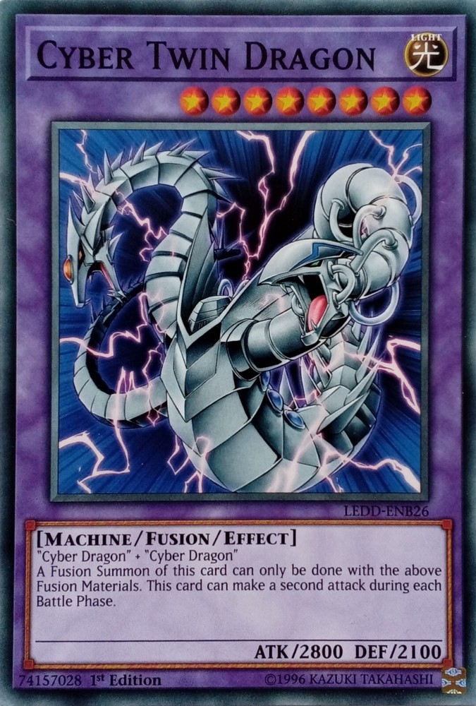 LEDD-ENB26 CYBER TWIN DRAGON COMMON 1ST EDITION ALL YU-GI-OH CARDS I SELL ARE KONAMI TOURNAMENT LEGAL. CARDS ARE ALL NEAR MINT TO LIGHTLY PLAYED CONDITION POSTAGE IS FREE SO YOU CAN BUY AS MANY CARDS AS YOU WANT FROM US AND NOT PAY A PENNY POSTAGE. IF YOU HAVE ANY QUESTIONS PLEASE FEEL FREE TO CONTACT ME. Track Page Views Wi4.9 Auctiva's FREE Counter