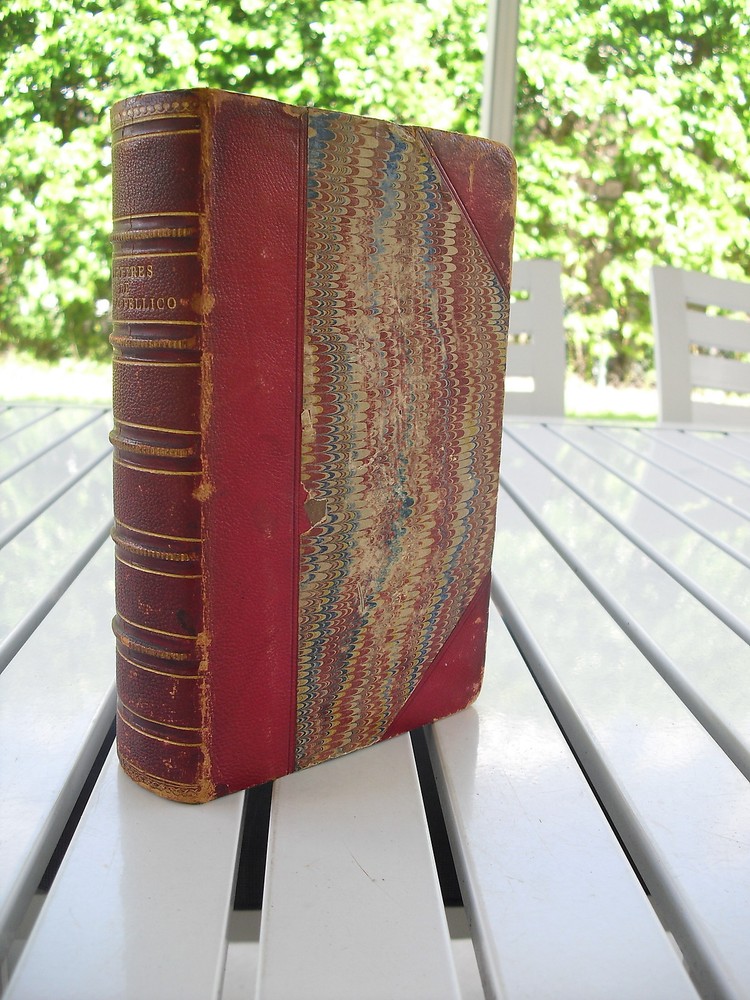 LETTRES DE SILVIO PELLICO RECUEILLIES ET MISES EN ORDRE PAR M. GUILLAUME STEFANI TRADUITES ET PRECEDEES D'UNE INTRODUCTION PAR M. ANTOINE DE LATOUR PARIS E. DENTU LIBRAIRE 1857 LEATHER Half leather book with marbleized boards. Leather rubbed, inside pages tight with some stains. Thank you for visiting us. Please check our store for more fabulous books on art, history, religion, rare and antique books, leather bound books such as Easton Press and Franklin Library, signed books, first editions, and rare finds available exclusively in this store.