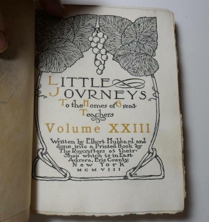 LITTLE JOURNEYS TO THE HOMES OF THE GREAT TEACHERS VOLUME 23 (XXIII) BY ELBERT HUBBARD AND PUBLISHED IN 1908 BY THE ROYCROFTERS OUT OF AURORA NEW YORK IN HAND TOOLED LEATHER BINDING. SCARCE ORIGINAL ISSUE BOOK FOCUSED ON GREAT TEACHERS OF HISTORY: BOOKER T WASHINGTON, THOMAS ARNOLD, ERASMUS, HYPATIA, ST BENEDICT AND MARY BAKER EDDY. . BOOK IS IN GOOD CONDITION WITH LEATHER EDGES CHIPPING/FLAKING, SPINE RUBBED, SHELF WEAR. . POSTAGE $4.00 IN THE UNITED STATES AND BY ARRANGEMENT OVERSEAS. I COMBINE ORDERS TO SAVE ON POSTAGE. PAYMENT CAN BE MADE BY PAYPAL........ GOOD LUCK! Get images that make Supersized seem small. THE simple solution for eBay sellers. Track Page Views With Auctiva's FREE Counter